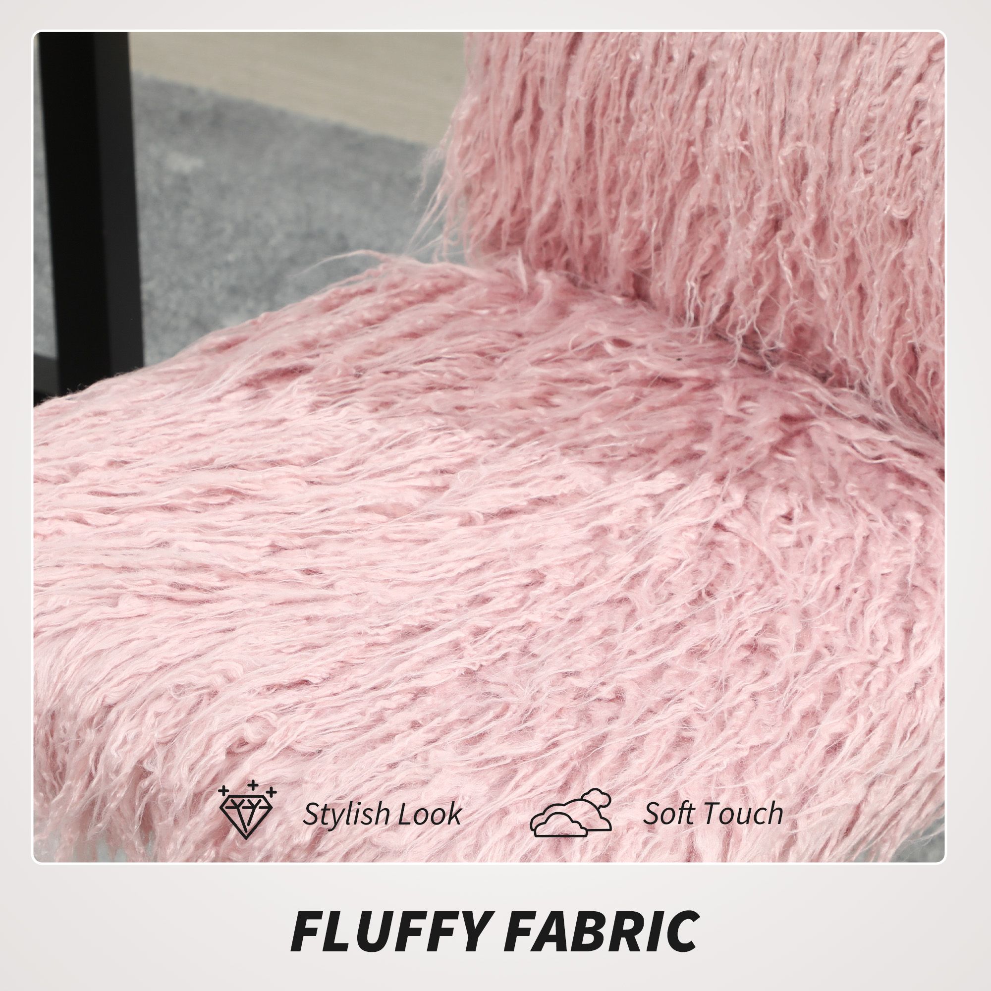HERON Plush Office Desk Chair Modern Armless Swivel Vanity Height Adjustable - Pink