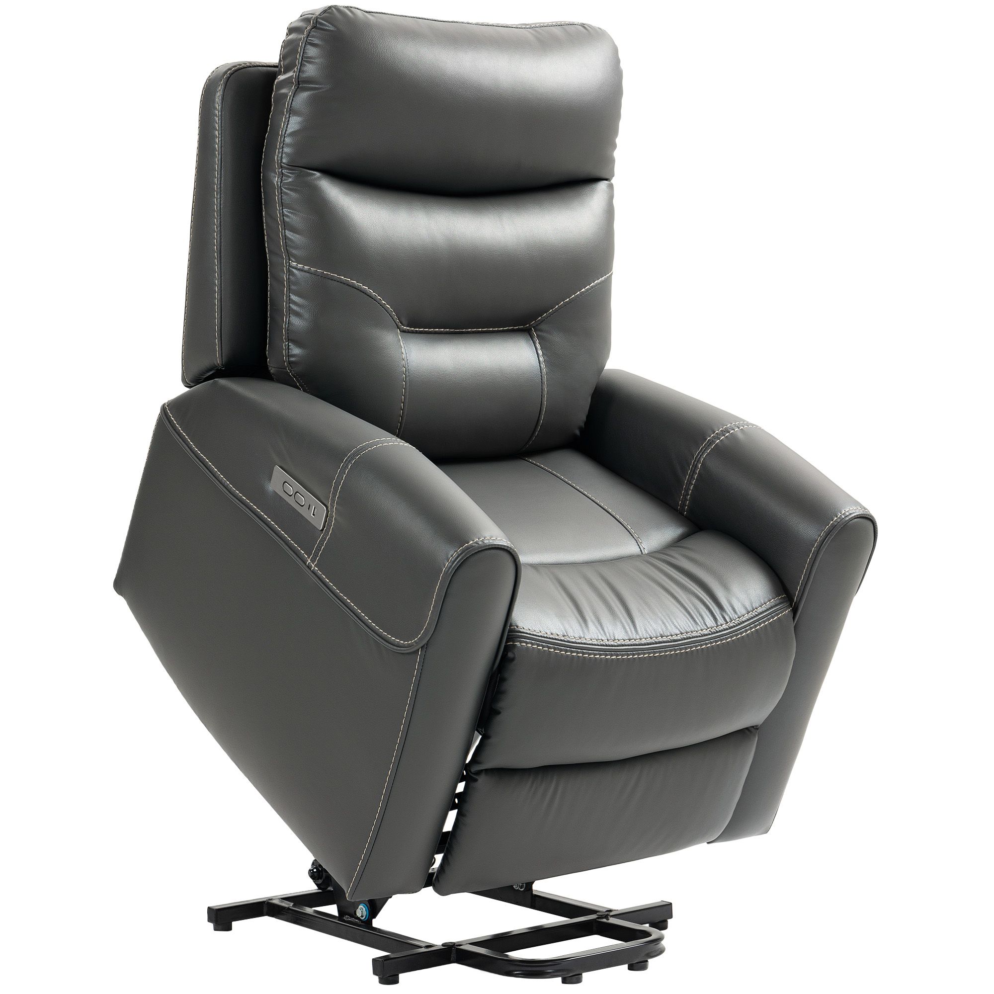 HERON Power Lift Recliner Chair, Faux Leather Armchair with USB Ports & Remote, for Elderly, Charcoal Grey