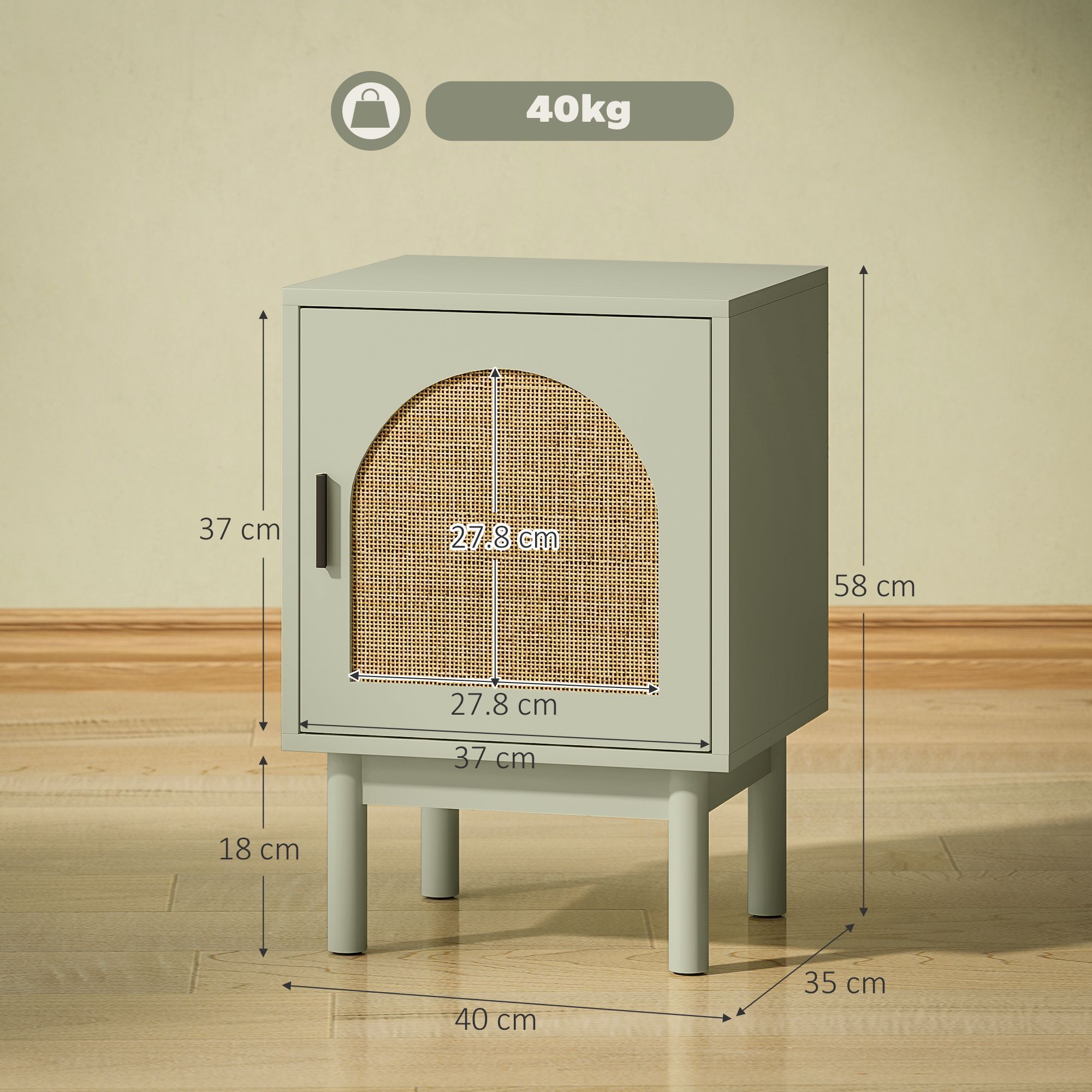 HERON Rattan Bedside Table for Bedroom Light Green