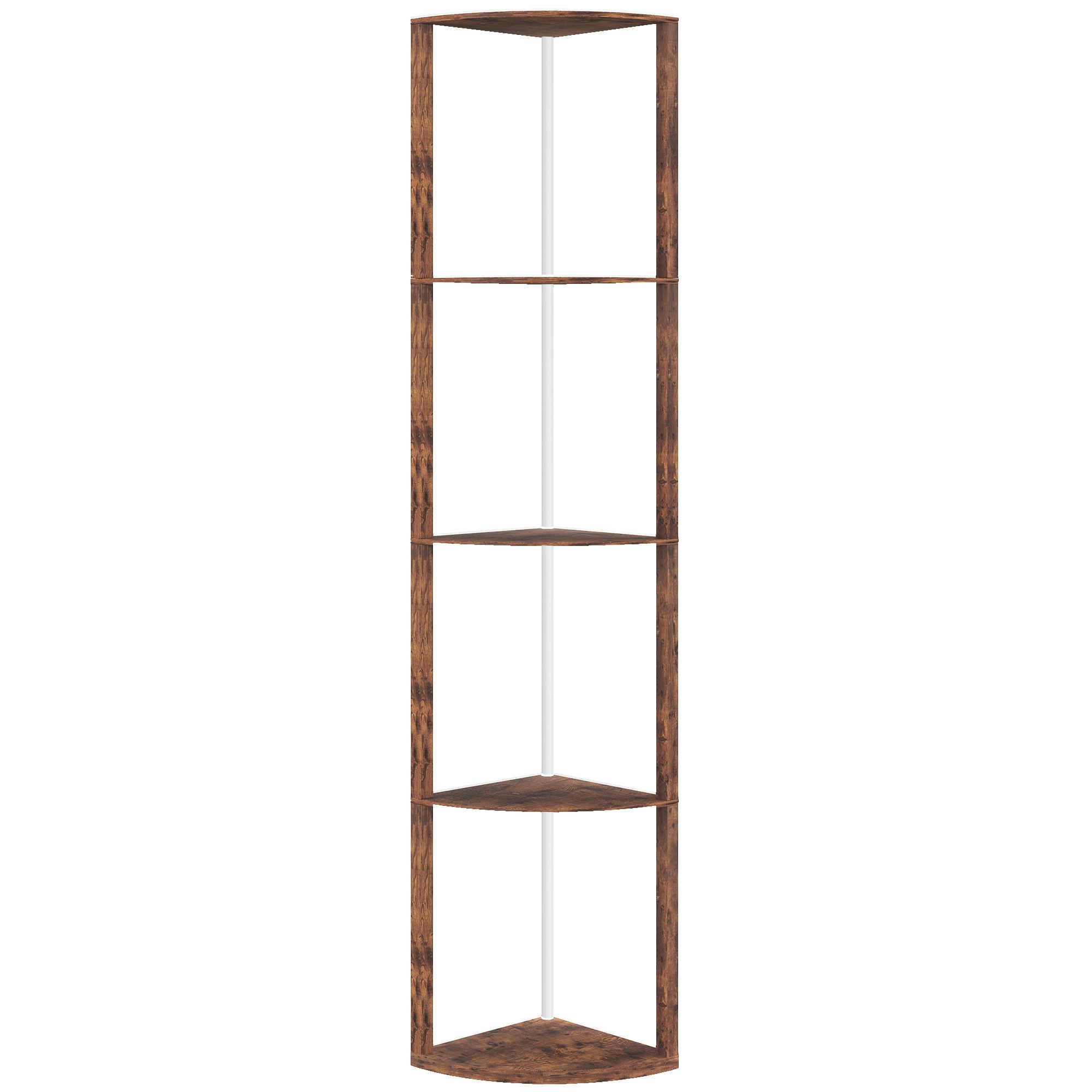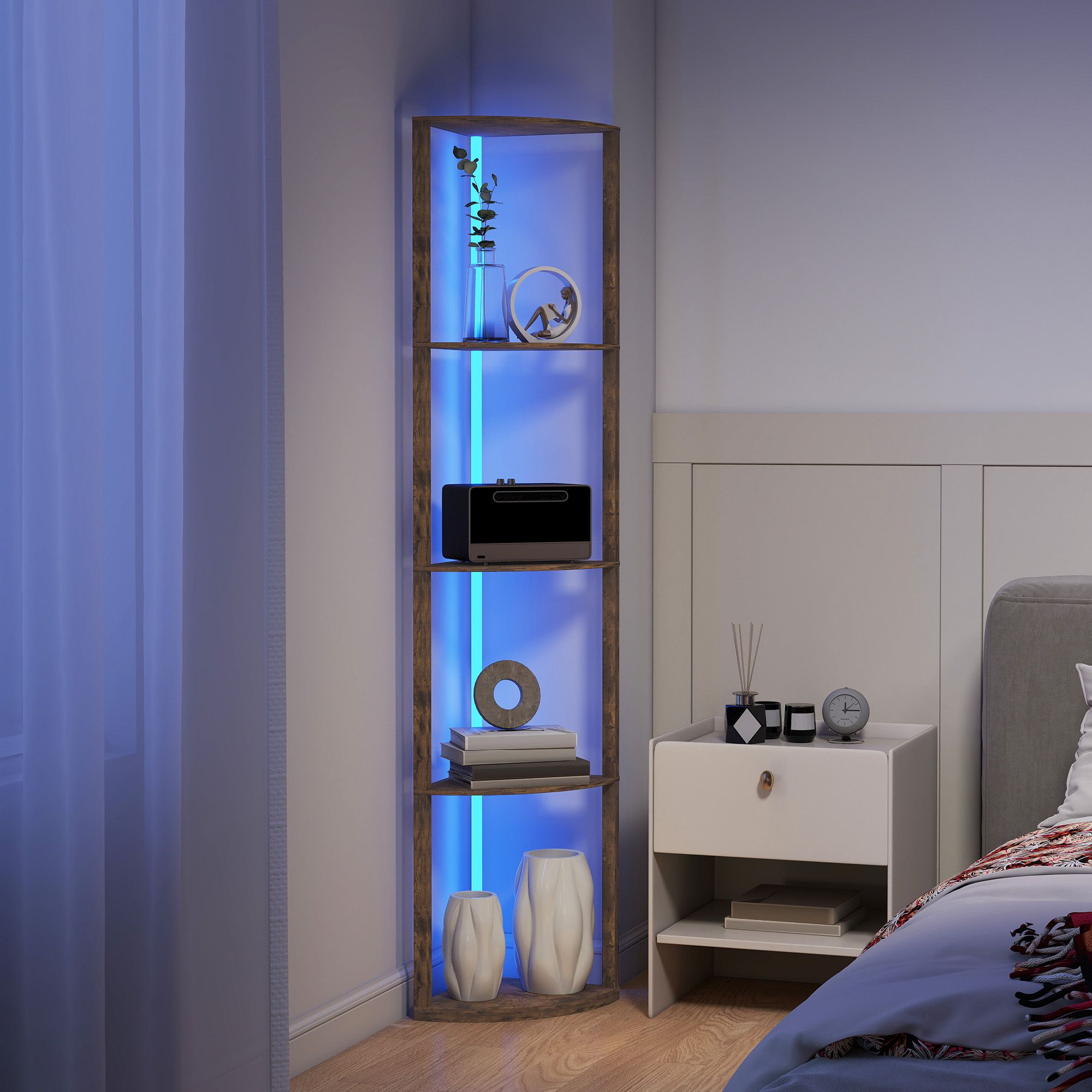 HERON RGB LED Floor Lamp with Shelves 5 Tier Dimmable Standing Lamp Remote - Rustic Brown