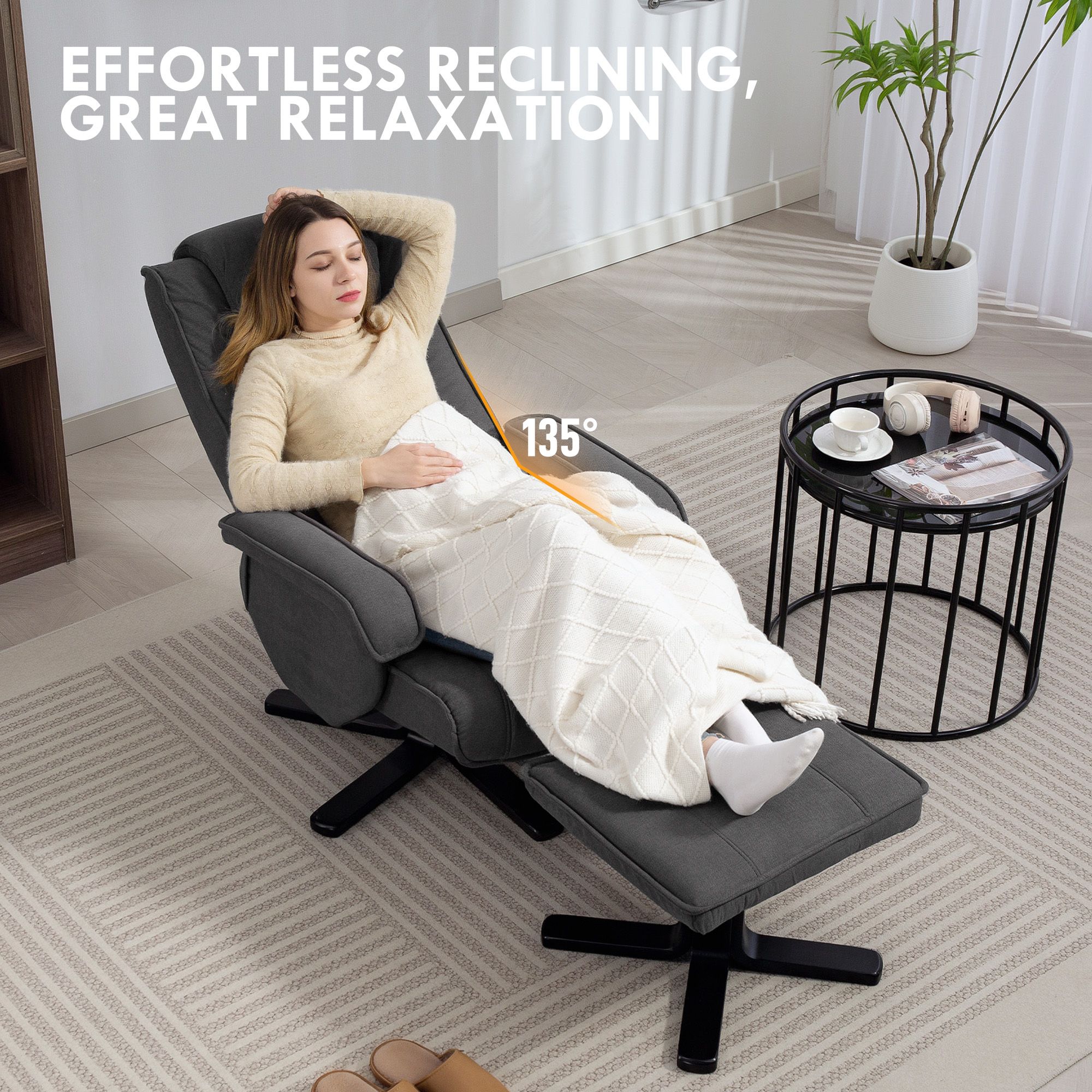 Discover relaxation anew with the HERON Recliner Chair and Footstool. Enjoy limitless comfort as it reclines up to 135° and rocks gently, suitable as your new fireside chair or comfy living room armchair. The 13 cm thick seat padding supports every inch from back to arms, while the 360° swivel feature adds a fun twist to your lounging experience.