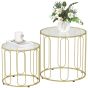 HERON Round Coffee Table Set of 2, Glass Nest of Tables with Metal Frame and Tempered Glass Tabletop, Modern Side Tables for Living Room, Gold Tone