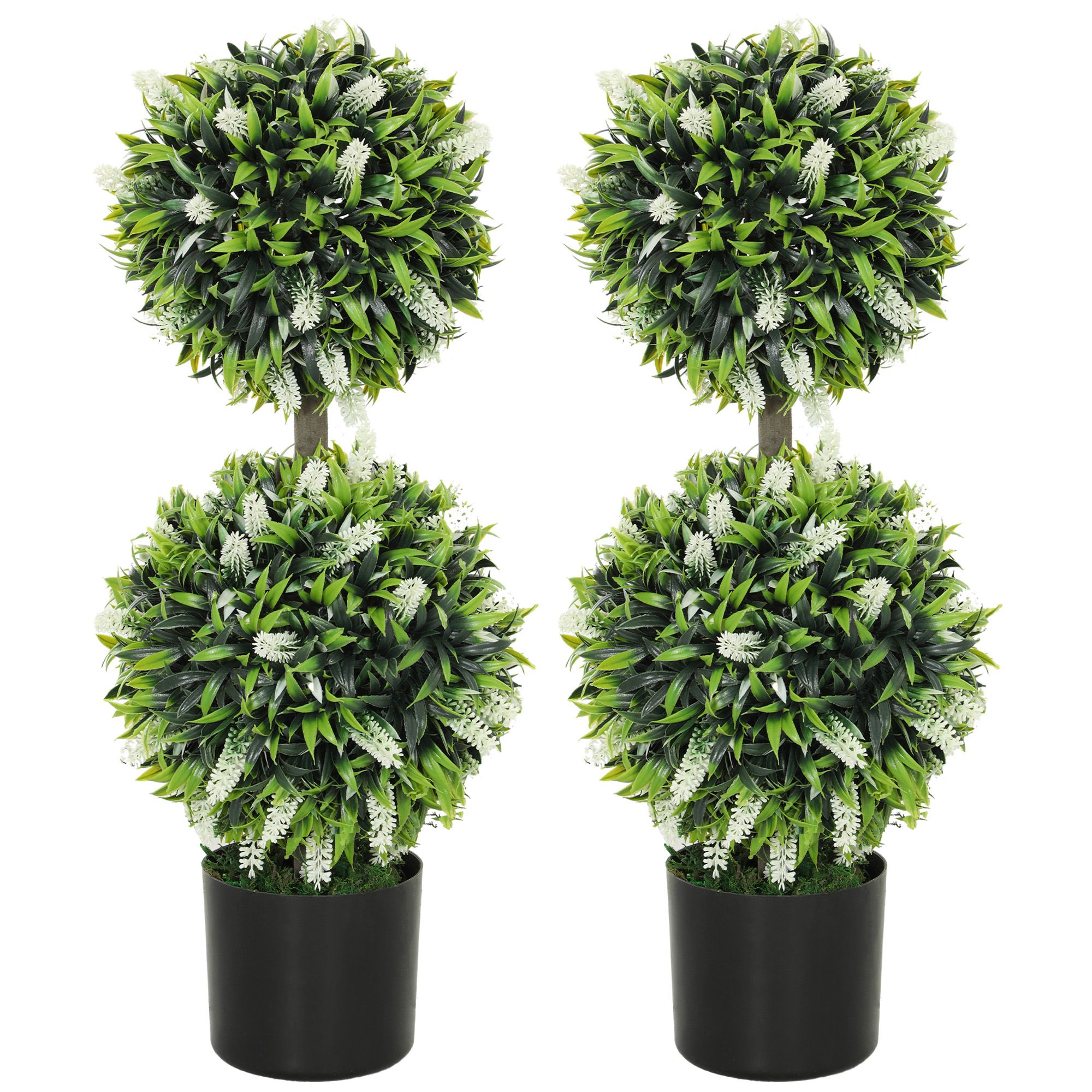 HERON Set of 2 Decorative Artificial Plants Ball Trees with Lavender Flowers in Pot Fake Plants for Home Indoor Outdoor Decor, 70cm, White