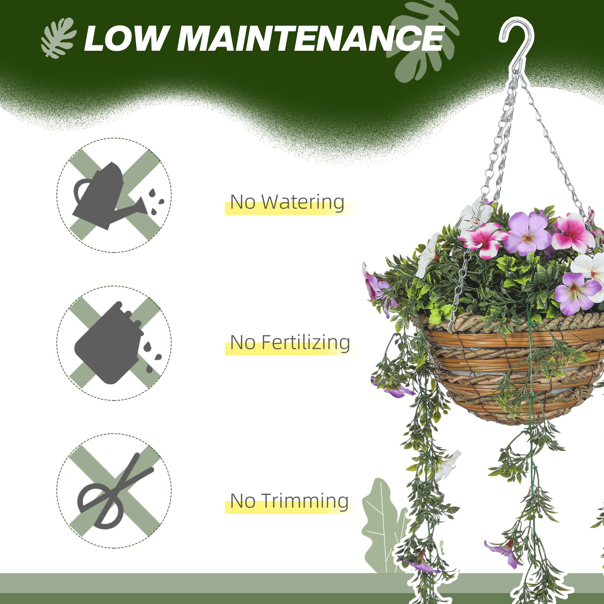 HERON Set of 2 Decorative Artificial Plants, Faux Silk Azalea Flowers in Hanging Baskets, Fake Plants for Home Indoor Outdoor Decor, Pink and White