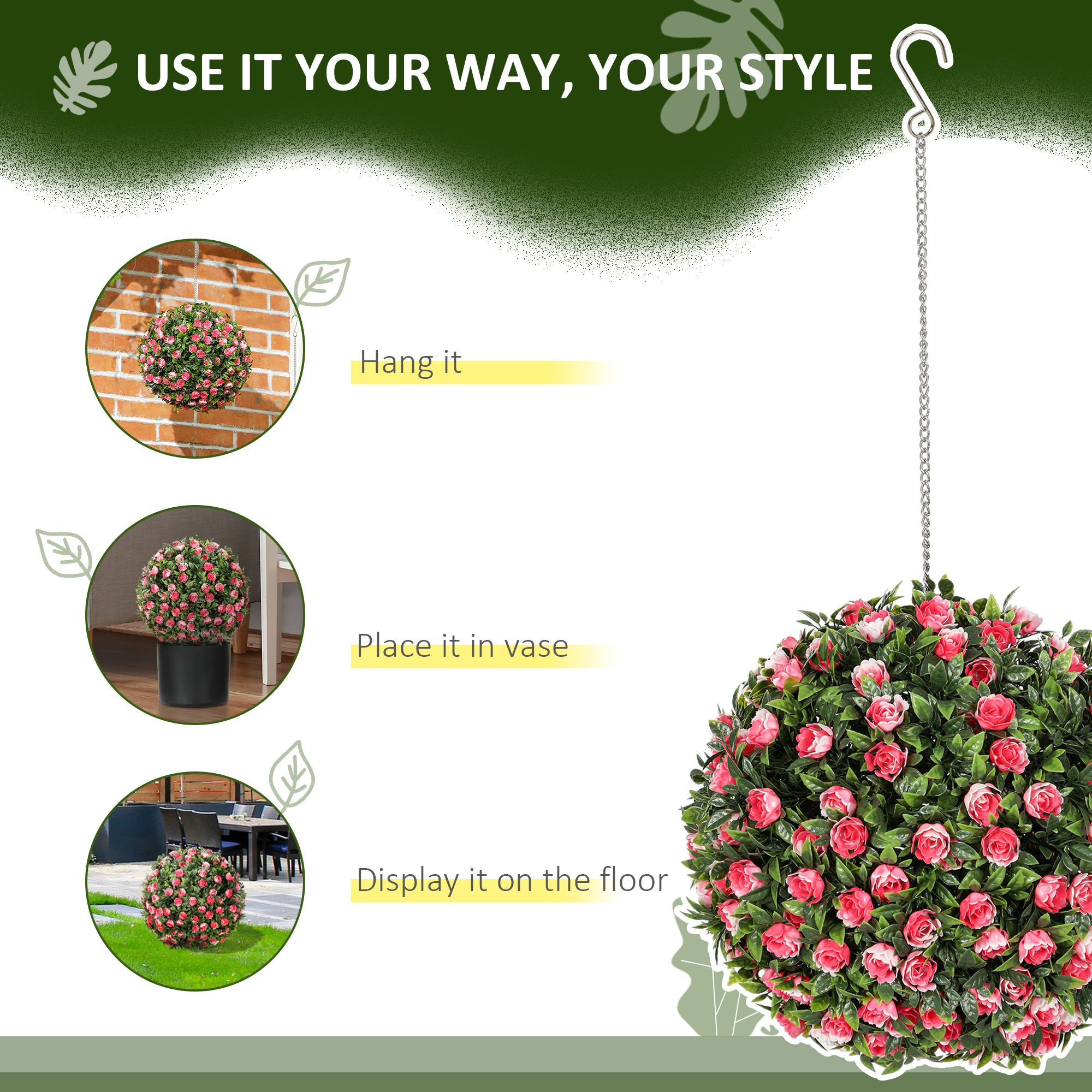 HERON Set of 2 Decorative Artificial Plants, UV-protected Artificial Plant Topiary Rose Balls, Fake Plants for Home Indoor outdoor Decor, 28cm, Pink