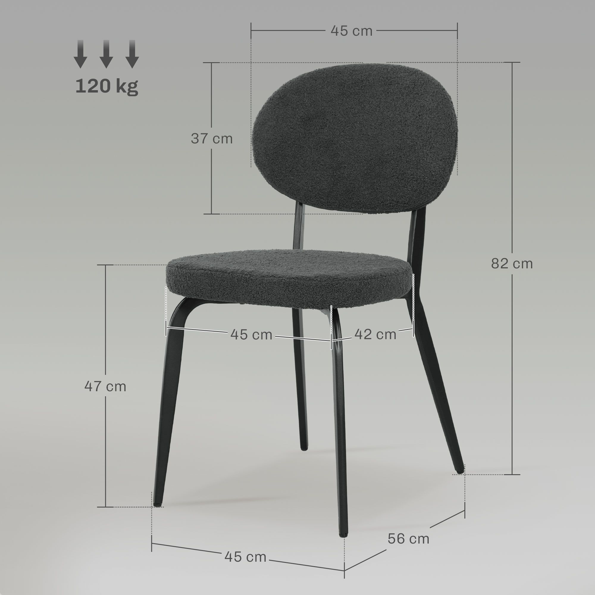 HERON Set of 4 Boucle Dining Chairs with Metal Legs, Upholstered Sherpa Seat, Black