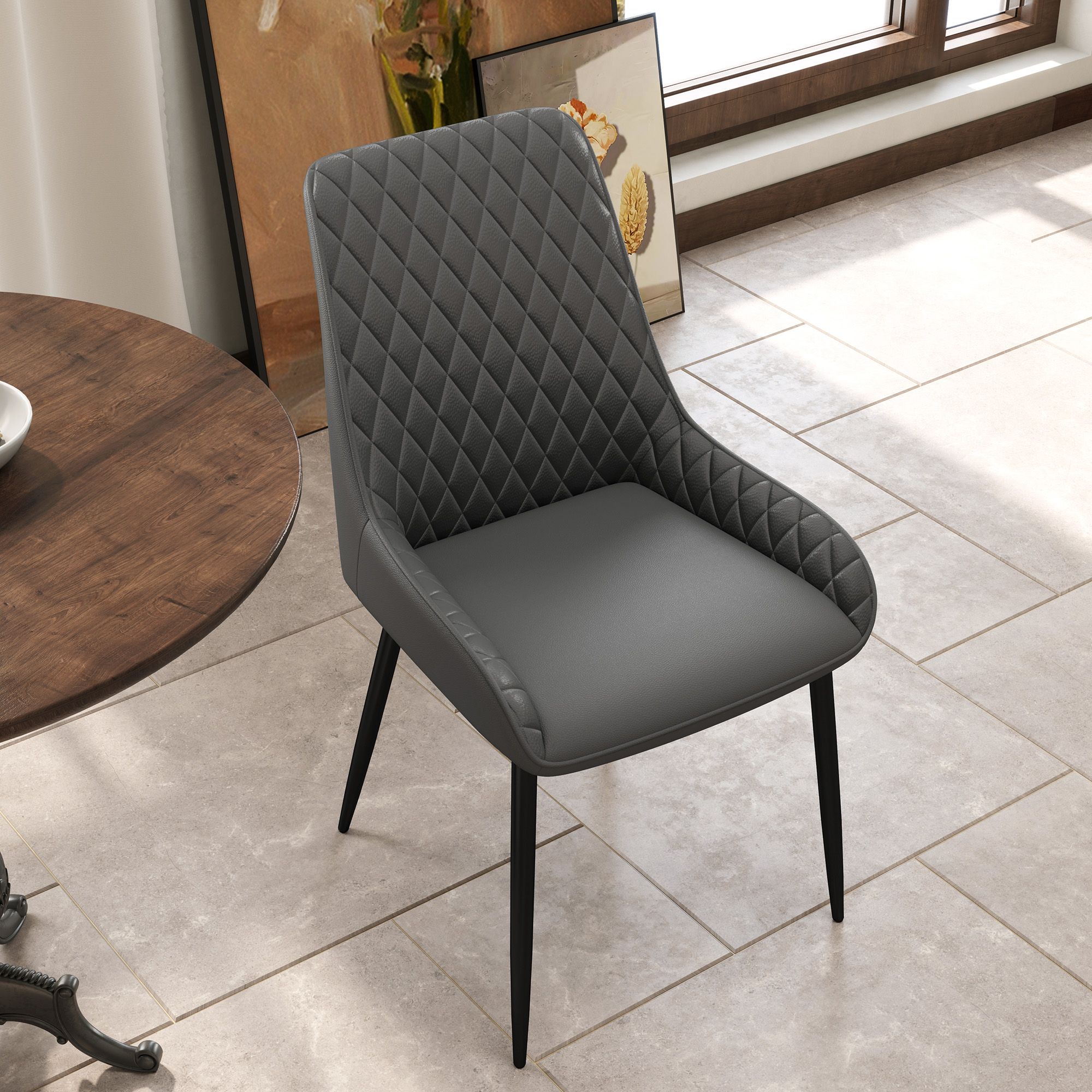 HERON Set of 4 Quilted PU Leather Dining Chairs Metal Frame Foot Caps - Grey