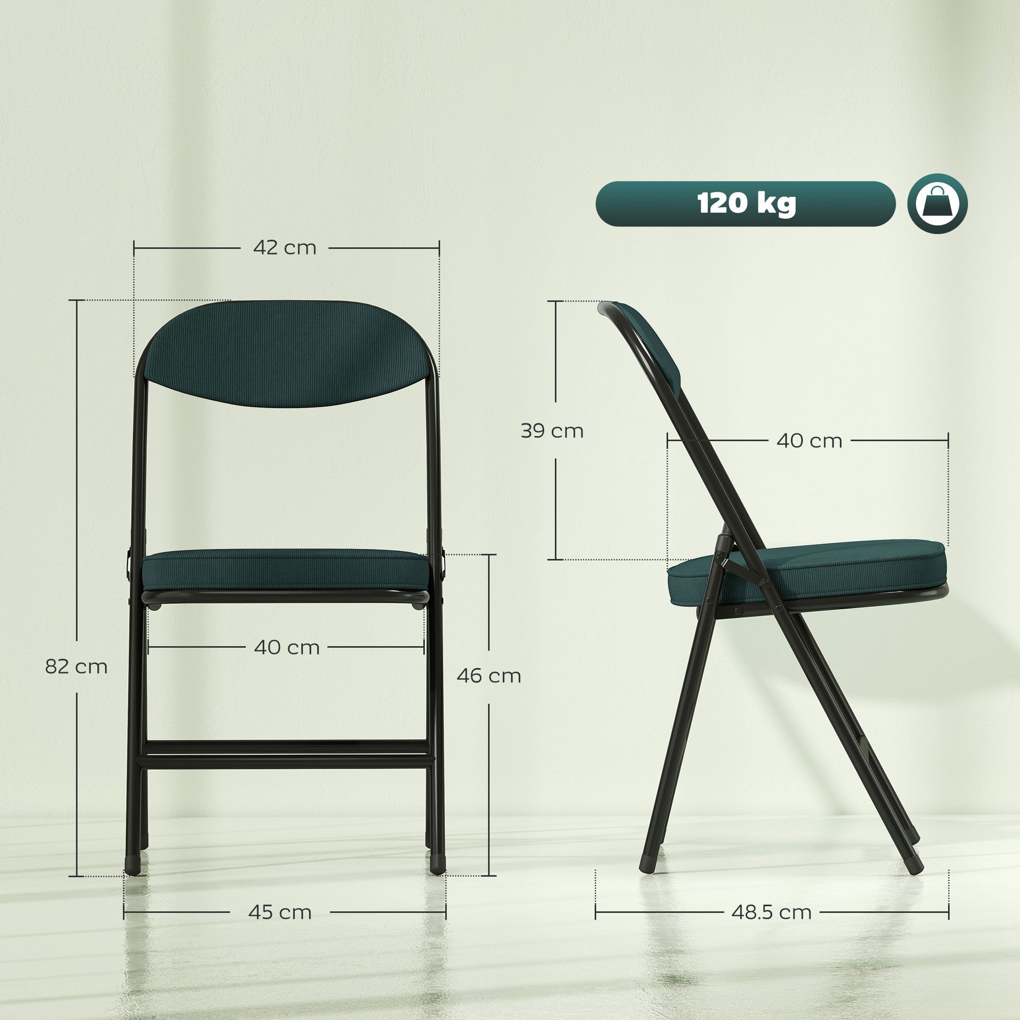 Portable, comfortable and stylish - this set of four HERON folding chairs are the kind you'll actually want to sit on. Using steel for a strong and supportive frame - made into a foldable design: these chairs are easy to store away and bring out whenever you need. The padded seat and back panel keep you comfortable, with corduroy upholstery for style. Great for use all over the home: dining room, lounge, study - and more.