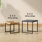 Striking style, doubled with this HERON nest of tables. Comes with a black boxy table and a wood-effect tray top boxy table: pair together or use separately - whether that's for keeping food and drink close by, working from, or just adding to the overall aesthetic. Both end tables are supported with their powder coated steel frames.