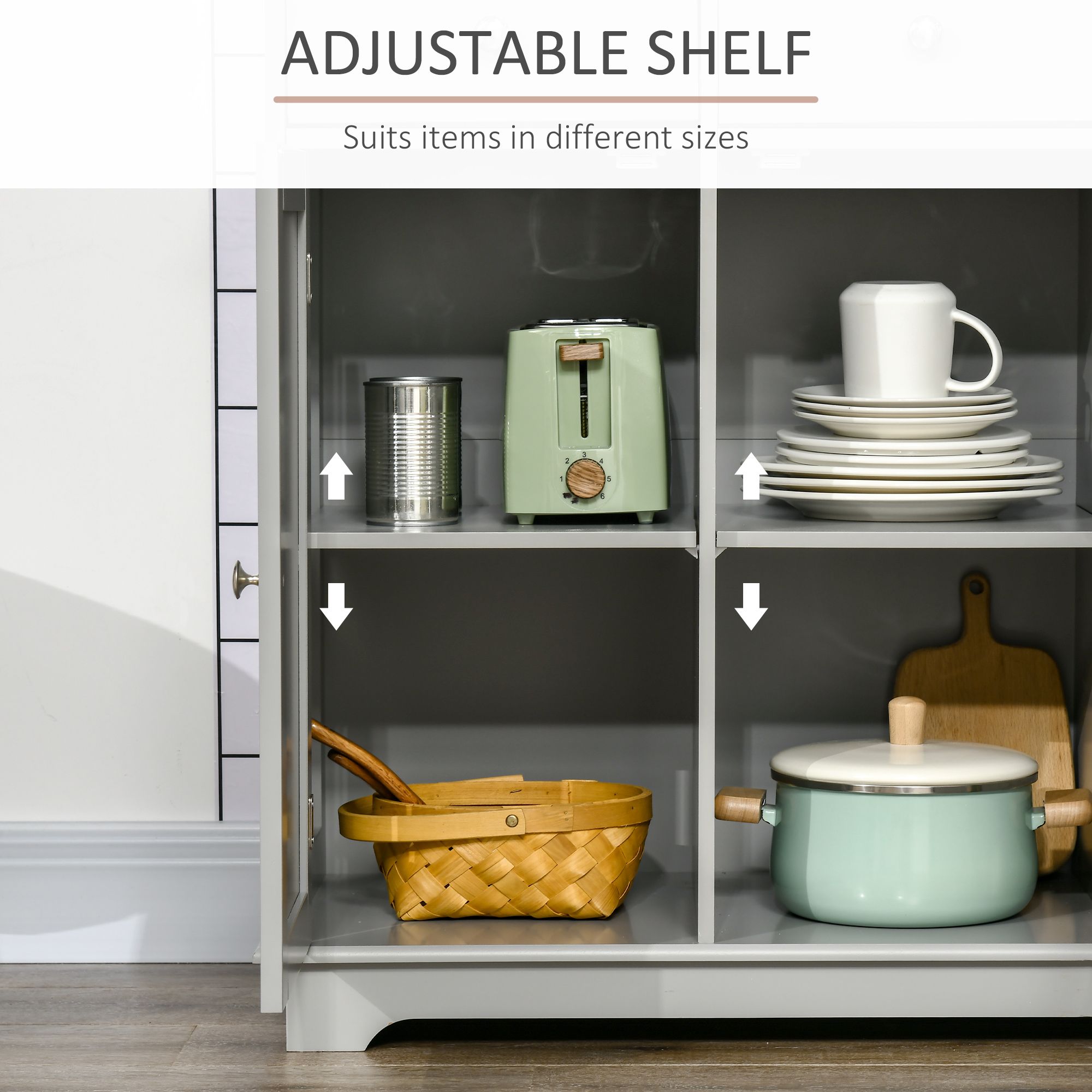 HERON Sideboard with Rubberwood Top and Adjustable Shelves Grey