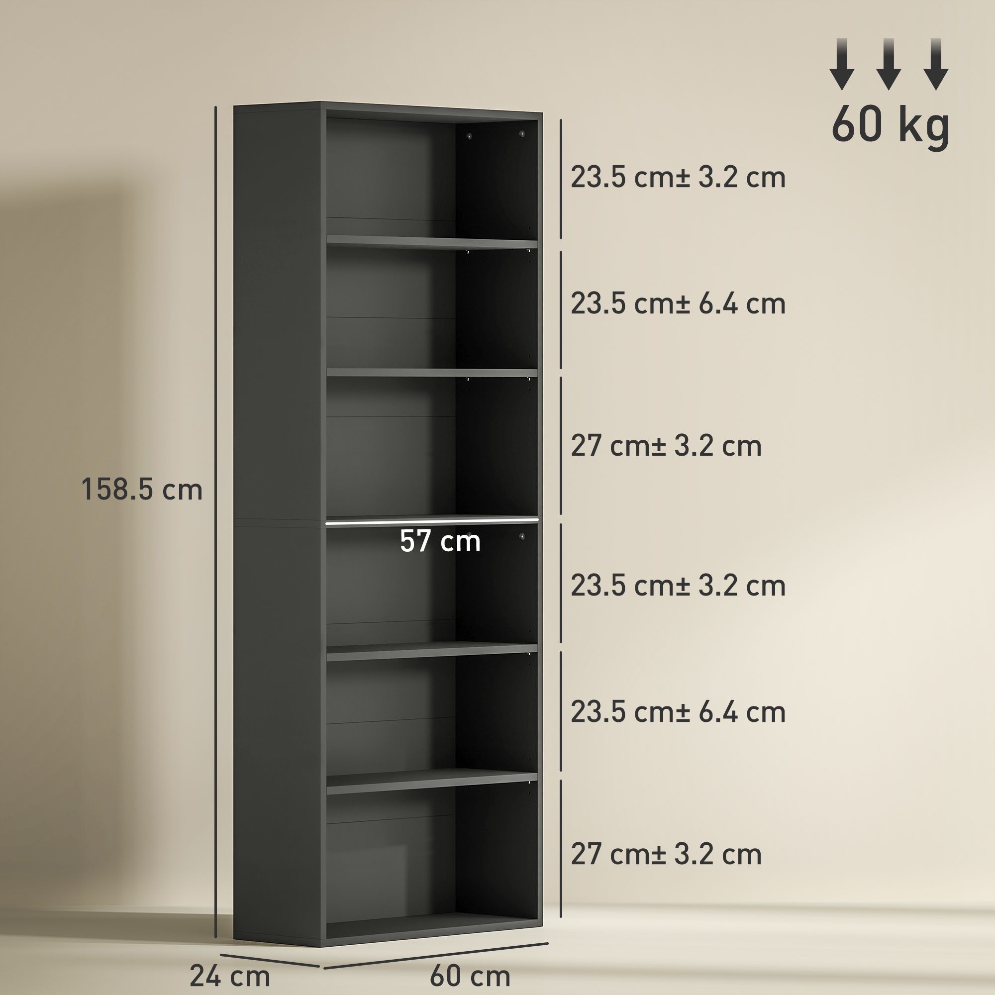 Overall Dimension: 60W x 24D x 158.5H cm