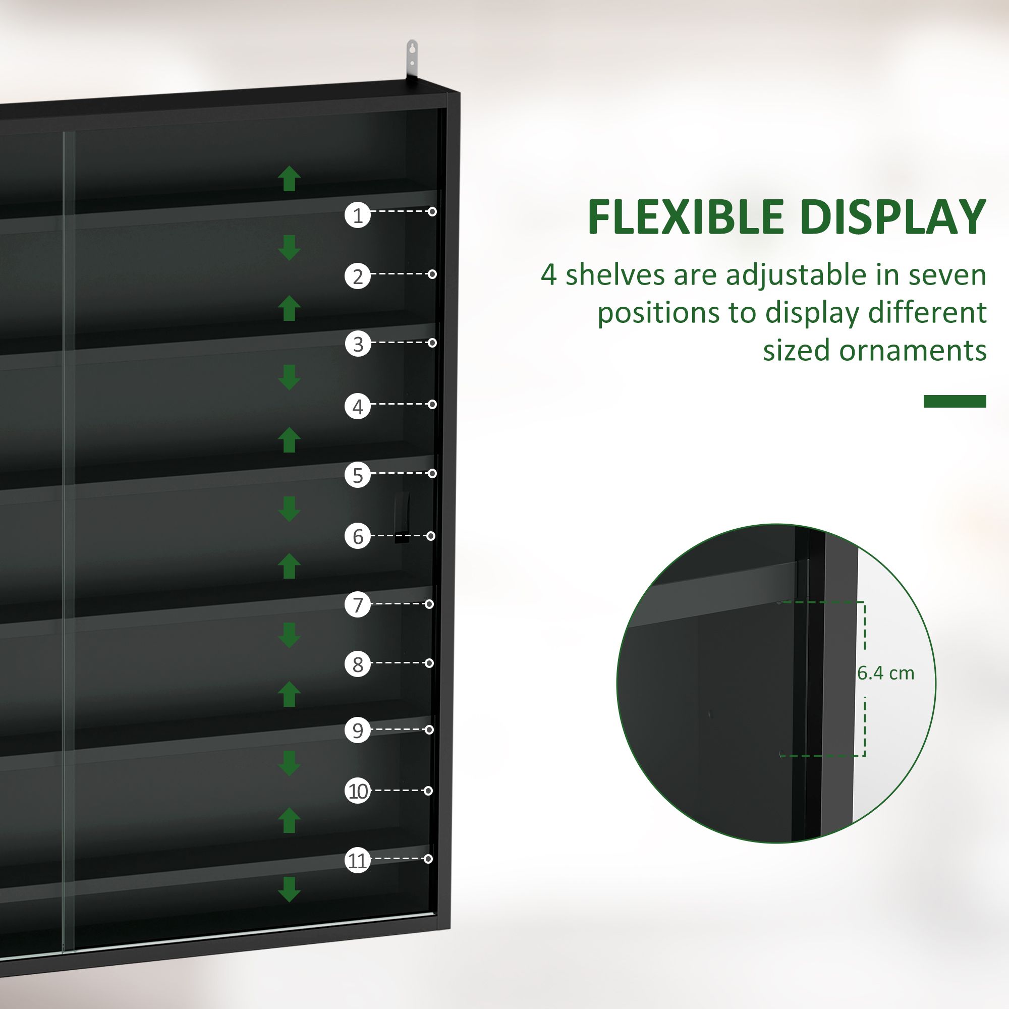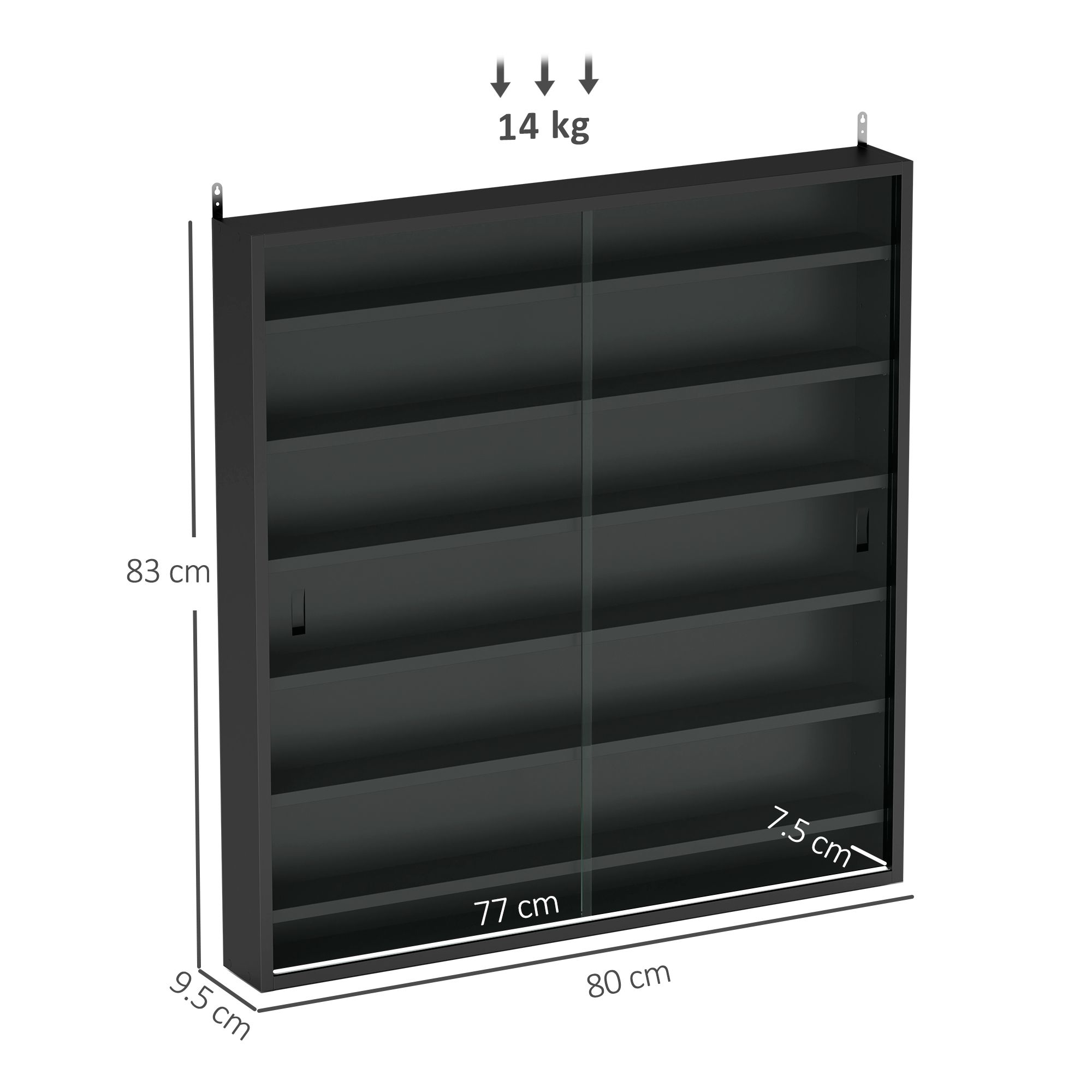 HERON Six Shelf Display Cabinet, with Glass Doors - Black