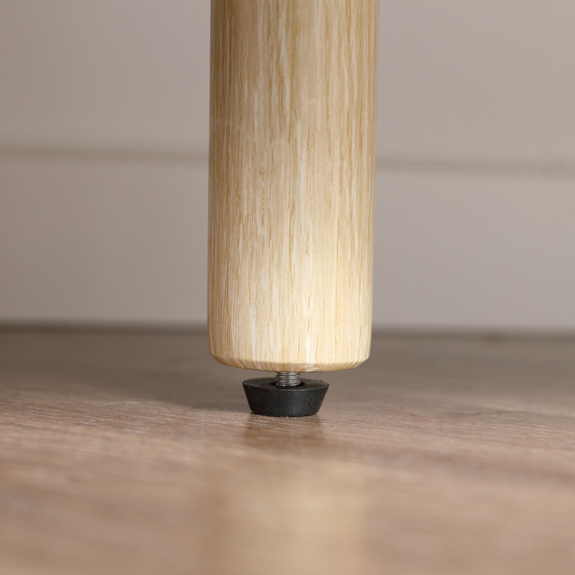 Go classic in the home with this HERON TV unit with storage. An oak wood-effect design, it looks great in plenty of different home interiors. This TV bench comes with a large tabletop to hold a 50" screen, two middle shelves and two end cupboard - plenty of storage for electronics, accessories, magazines, books and DVDs. Complete with two cable holes on the back to keep wires together so they don't tangle.