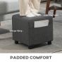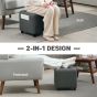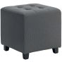 HERON Square Footstool, Small Ottoman with Side Pocket, Linen Fabric Footrest Foot Stool with Rubber Wood Legs, Grey