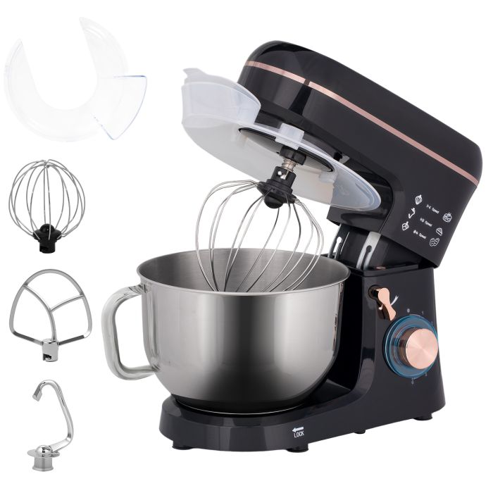 HERON Stand Mixer, 5L Food Mixer for Baking, 6 Speeds and Pulse Setting, 1400W Cake Electric Kitchen Mixer, Black