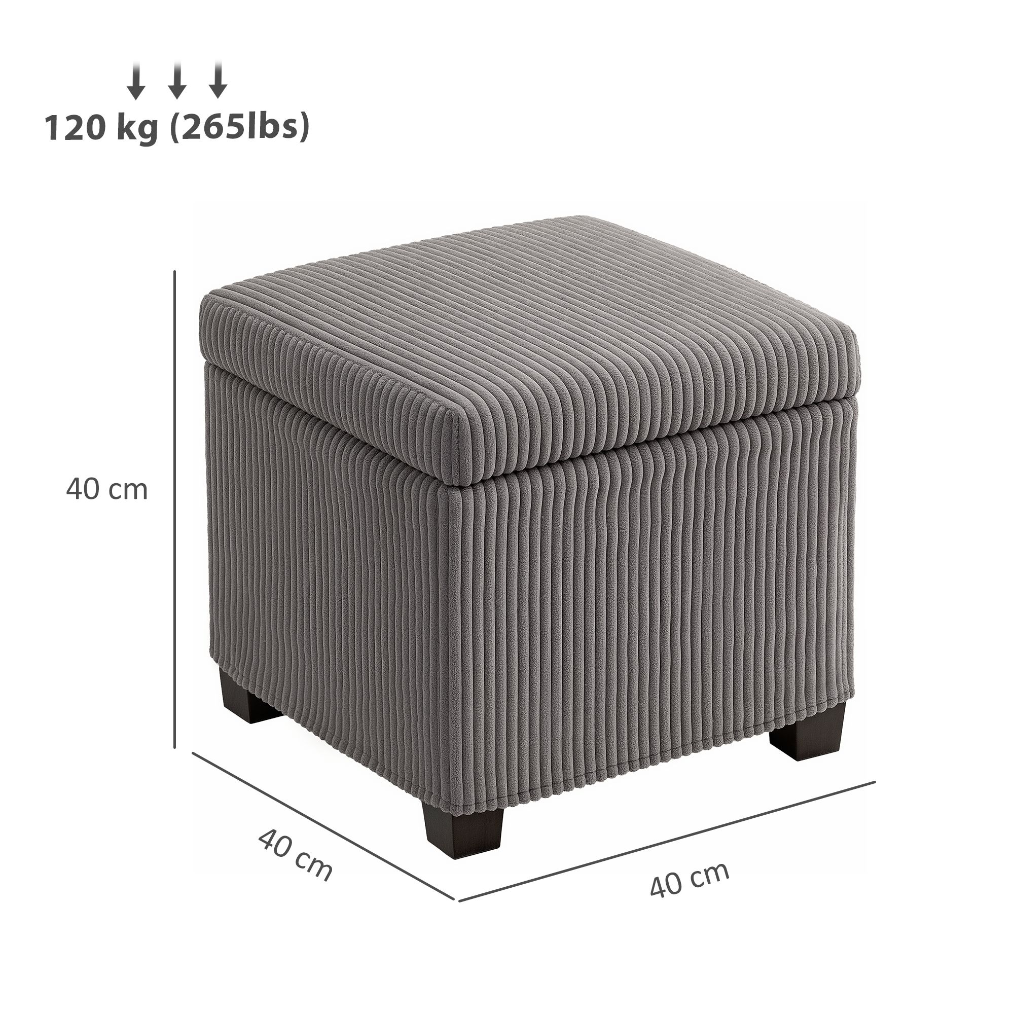 HERON Storage Ottoman Bench, Corduroy Footstool with Removable Lid and Legs, 40cm Storage Chest Box for Living Room, Bedroom, Hallway, Grey