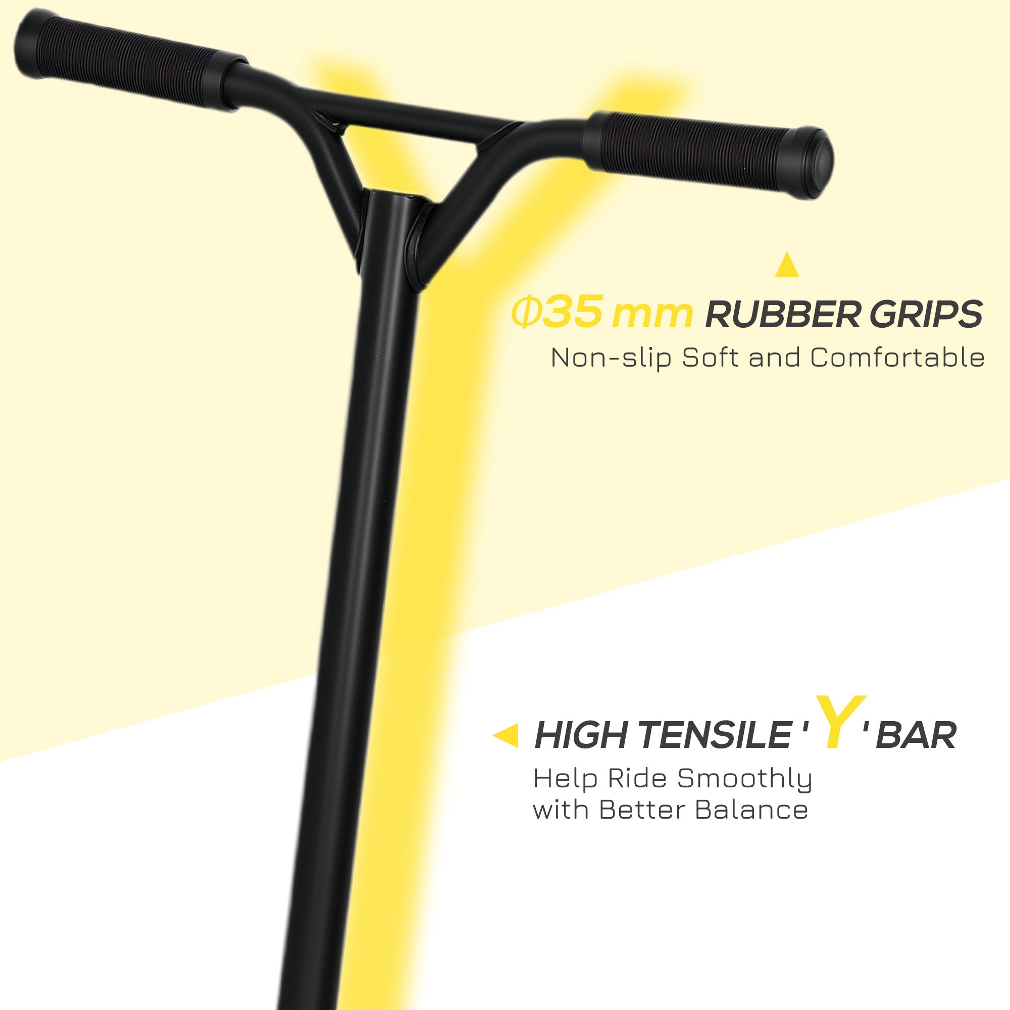 Practice your tricks and stunts with HERON stunt scooters. It has rotating handlebars and front wheels, so you'll learn a new range of scootering skills, whilst the wide non-slip deck keeps you balanced when performing stunts - the rear brake brings you to a swift stop at any time. Made from durable steel and aluminium, its lightweight frame is easy to carry and makes riding much smoother, especially with the PU wheels - the non-slip handlebars are comfortable to hold when riding.