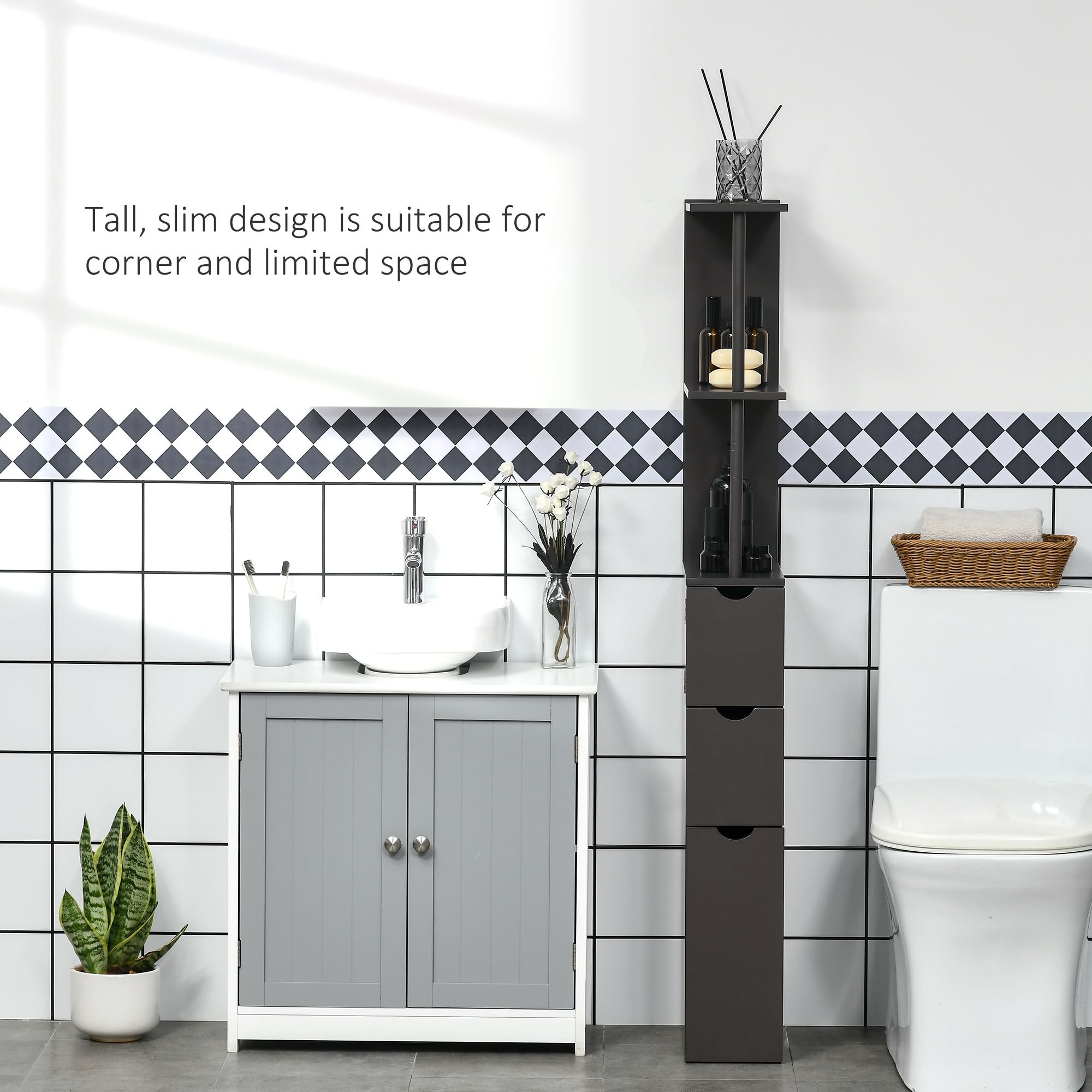 HERON Tall Bathroom Cabinet, Freestanding Bathroom Storage Cabinet with 2-Tier Shelf and Drawers, Narrow Cupboard Storage Unit, Brown