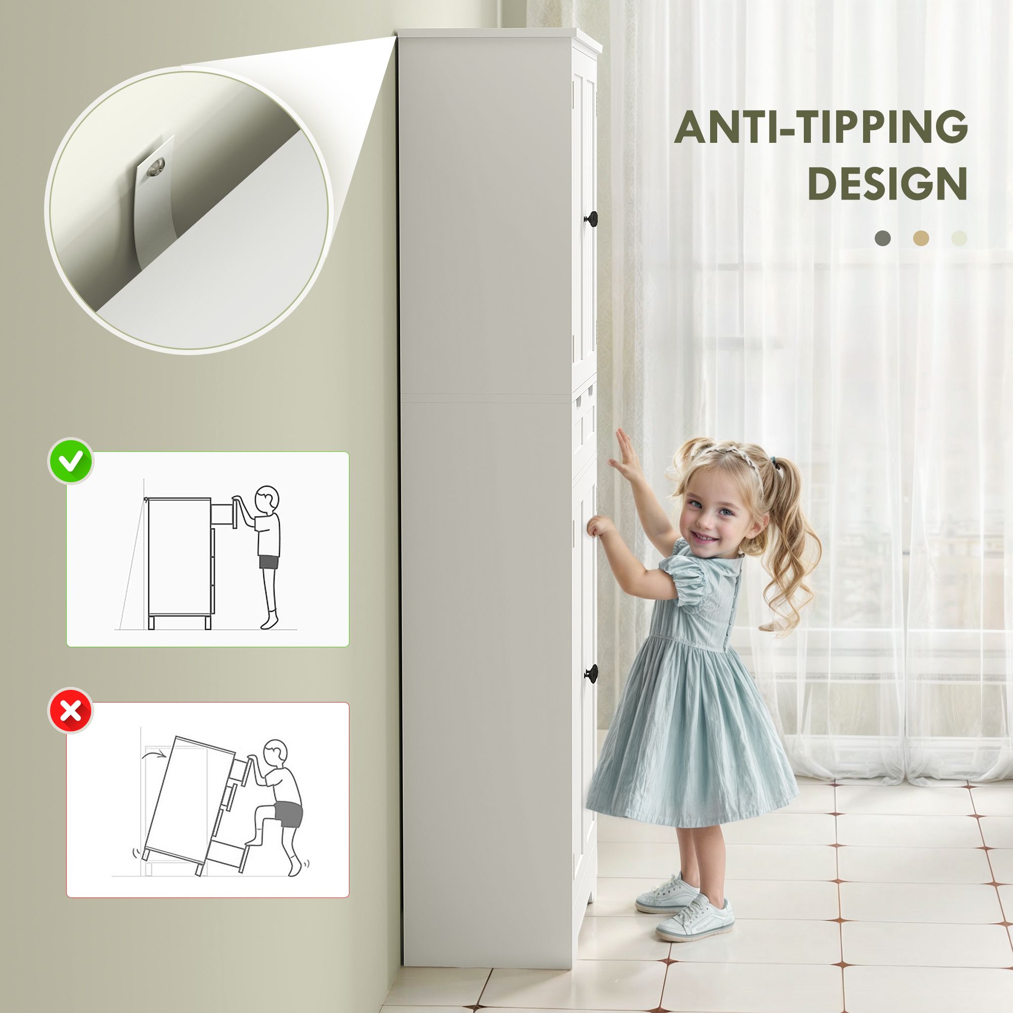 HERON Tall Bathroom Cabinet with Drawer, Doors & Adjustable Shelf, 60x30x160cm, White