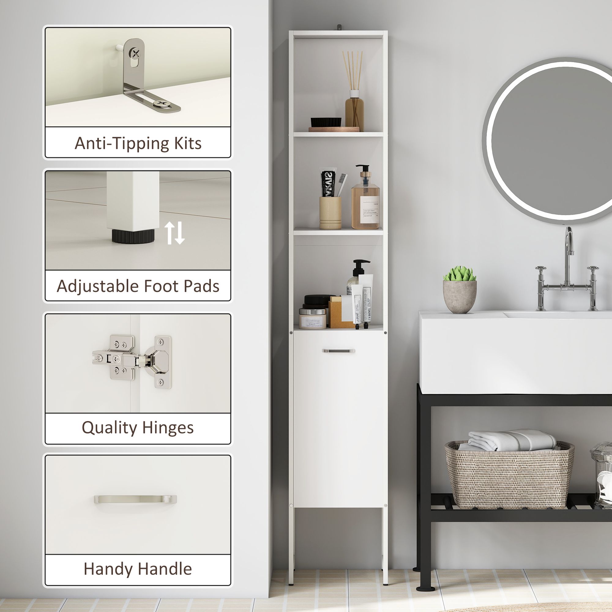 Maximise your bathroom's potential with the tall bathroom cabinet from HERON. This slim bathroom storage unit offers a blend of three open shelves and two closed compartments, adapting to all your essentials with a five-level adjustable shelf. Its narrow, tall design efficiently utilises space, ensuring every inch of your bathroom shines with neatness and accessibility.