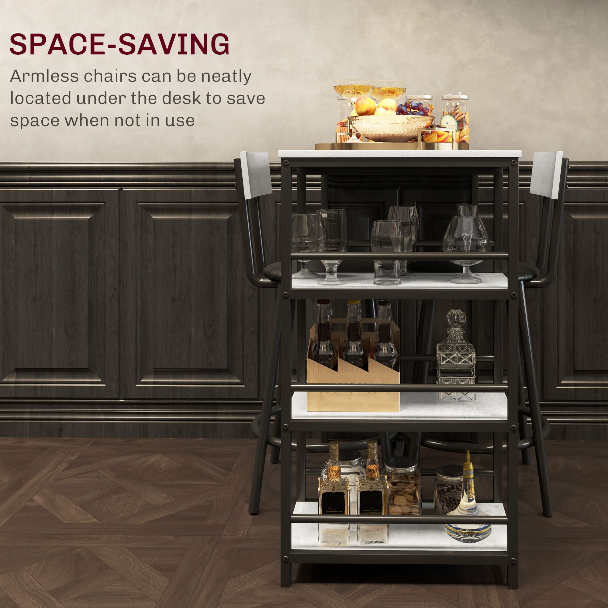 HERON Three-Piece Kitchen Dining Set, with Shelves - Grey/Black
