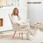 HERON Tufted Wingback Armchair, Teddy Fleece Accent Chair with Wood Legs, Cream White