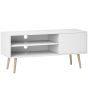 Bring beauty into your living room with this HERON media console. It features two shelves and a side cupboard - lots of room for keeping entertainment essentials together. Two cable holes make it easy to gather wires and keep them together to help avoid tangling. A great companion for your relaxing moments.