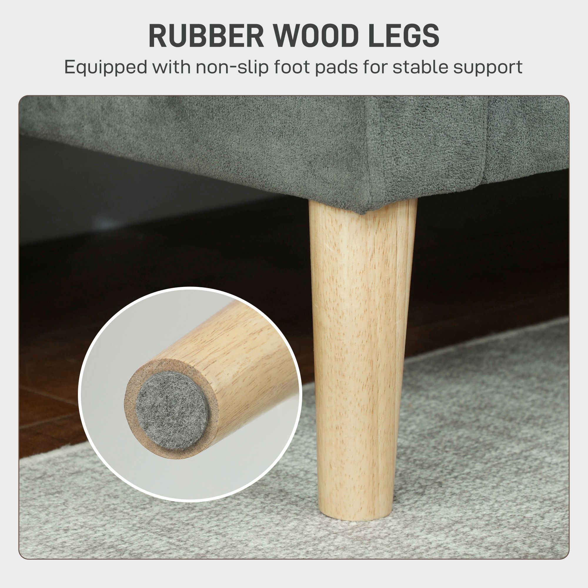 Material: Velvet (100% Polyester), Foam, Rubber Wood