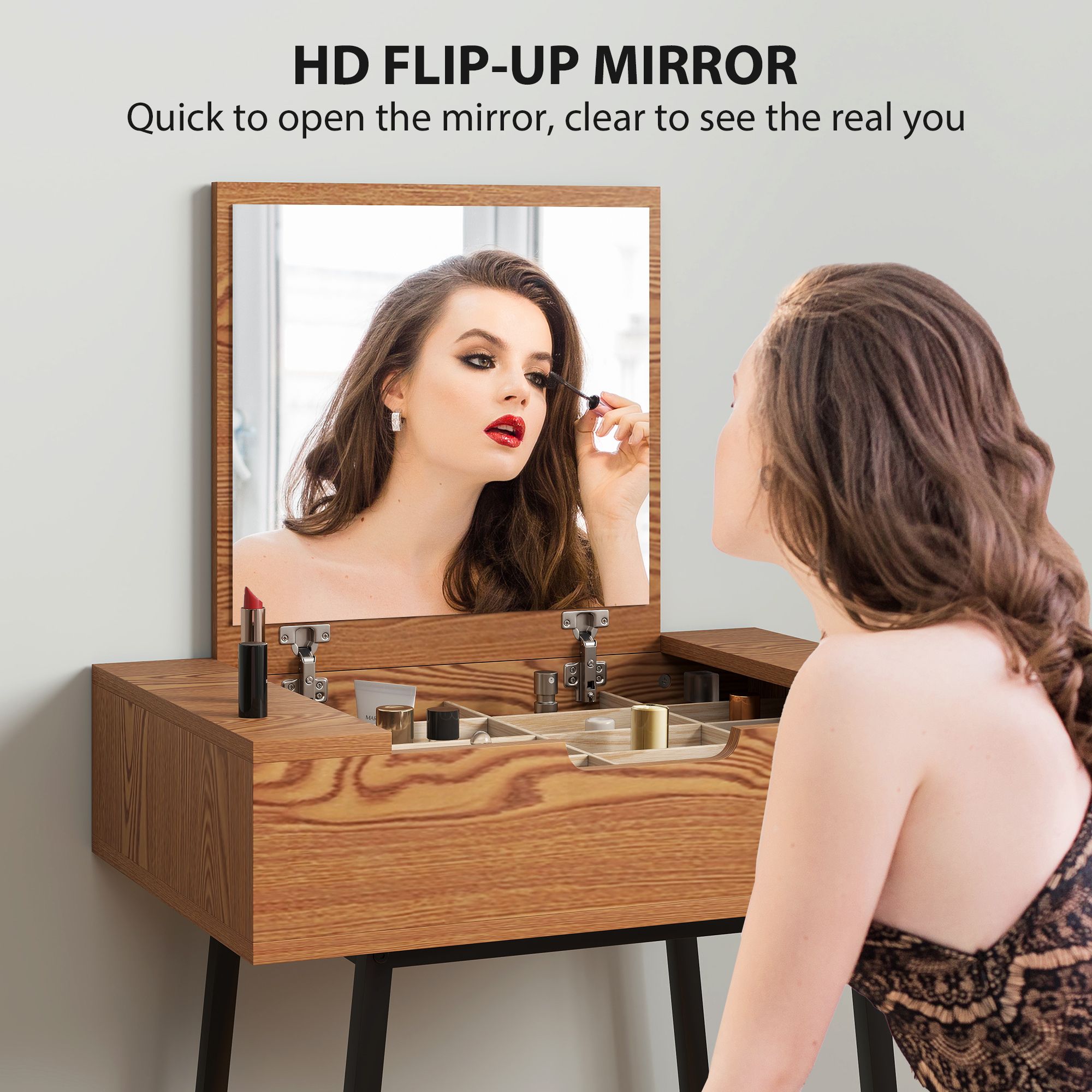 HERON Vanity Desk with Flip Up Mirror Industrial Dressing Table Natural Wood Effect