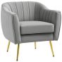 Look to this living room armchair to infuse luxury into everyday life. A tub-shaped design for plenty of sitting room, it comes with a thick padded seat for comfort. The wide back and armrests offer support. Wrapped in velvet-feel upholstery, this occasional chair is soft and beautiful; the grey colour effortlessly adds to the beauty. Metal legs for full support, it's completed with back indents for a shell-like appearance.