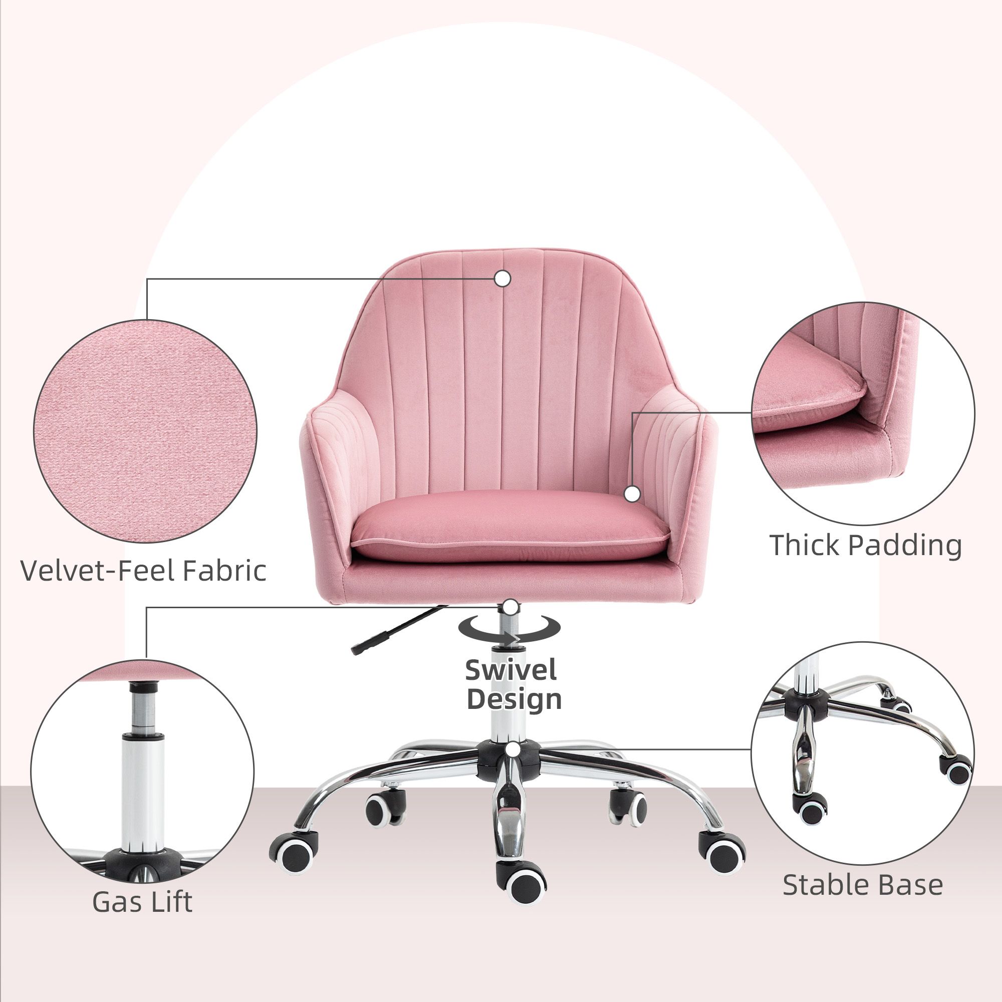 HERON Velvet-Feel Tub Office Chair with Seat Cushion - Dark Pink