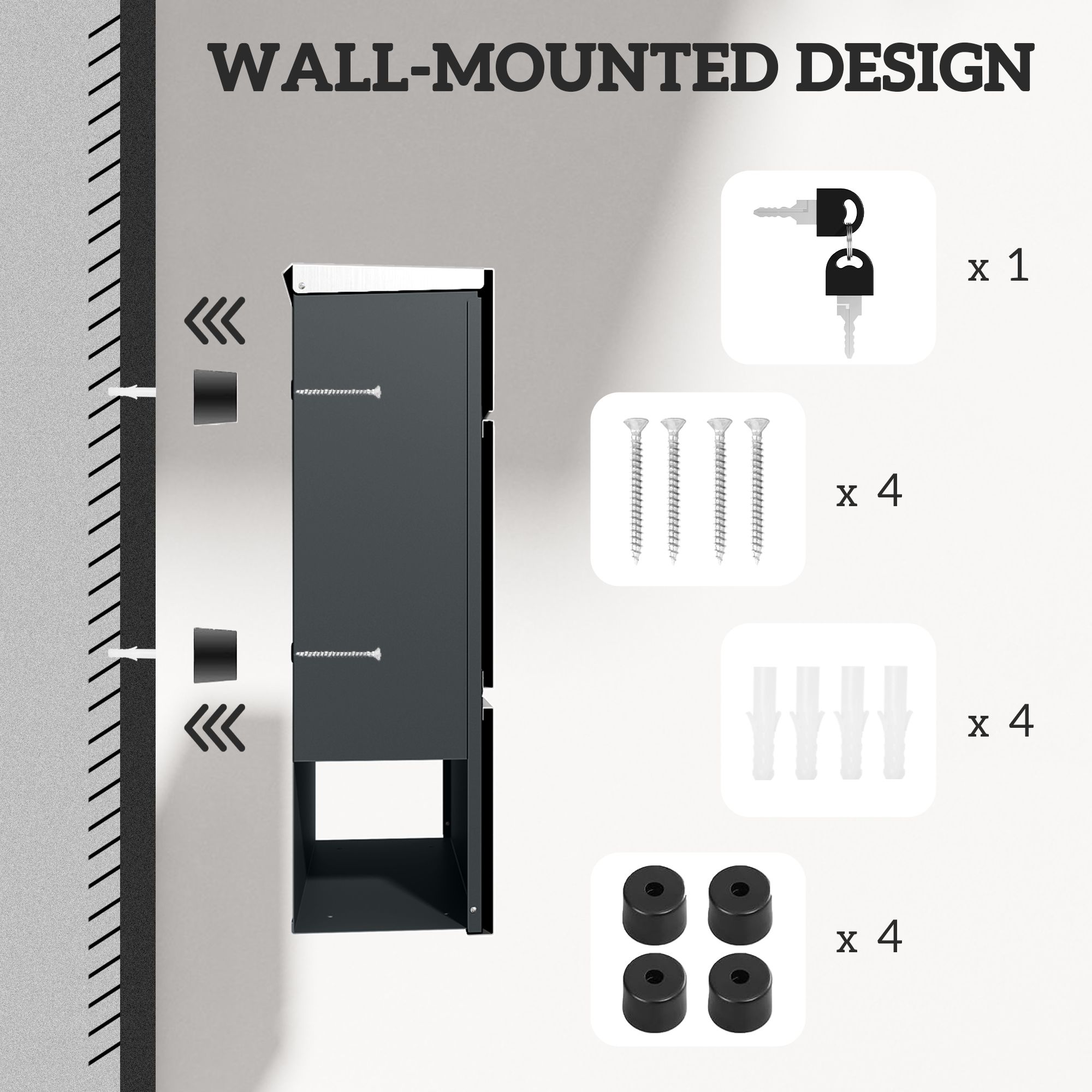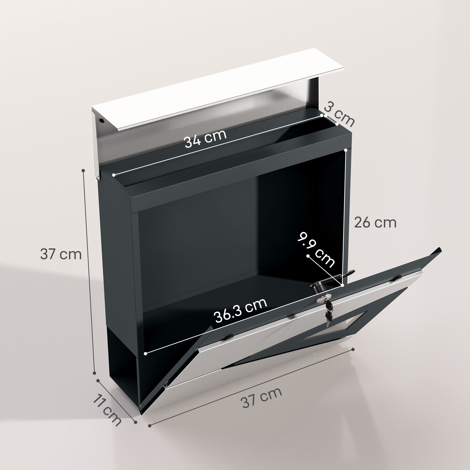 HERON Wall Mounted Post Box with Viewing Window, Dual Lock, Weatherproof Mailbox, Silver