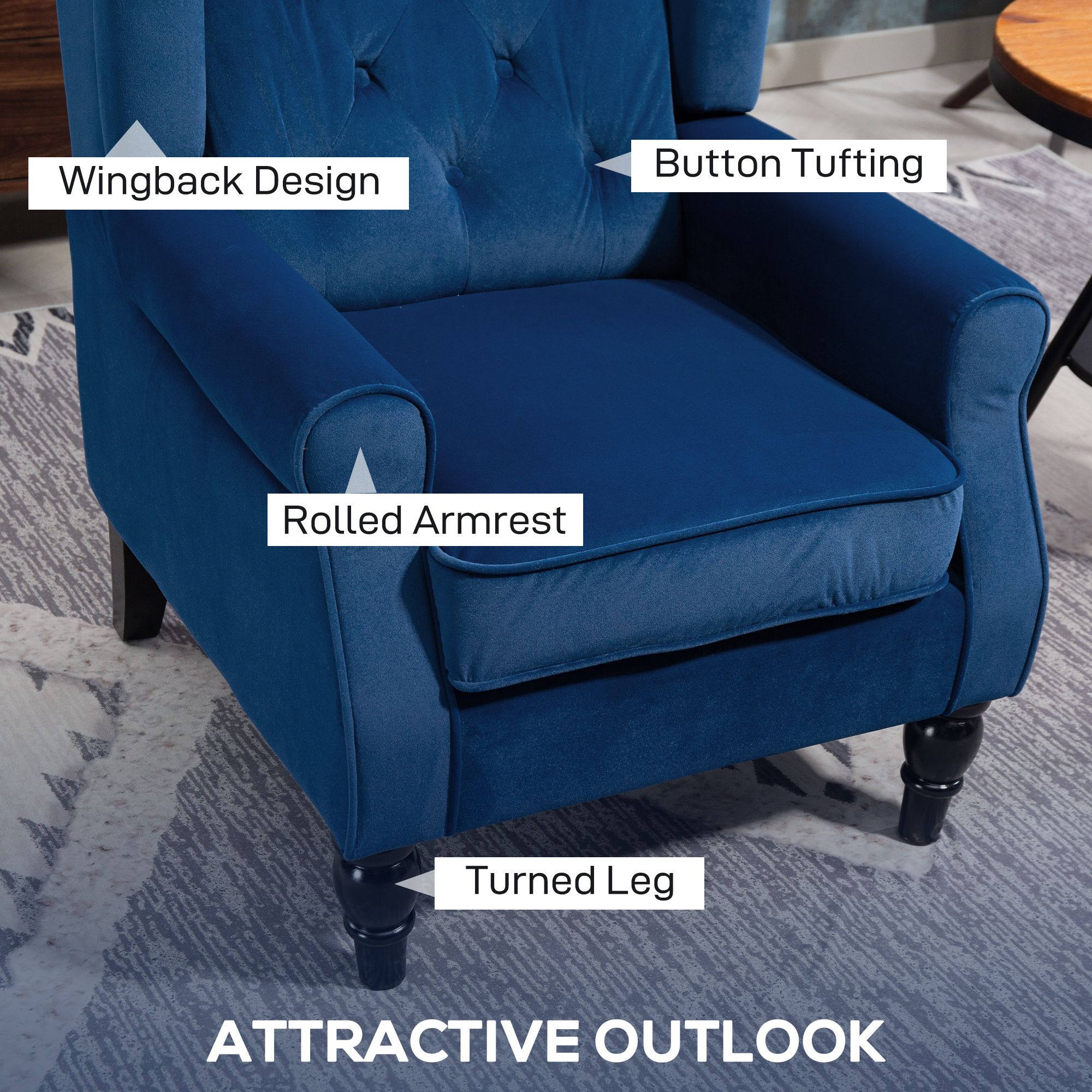 HERON Wingback Accent Chair Retro Upholstered Button Tufted Blue