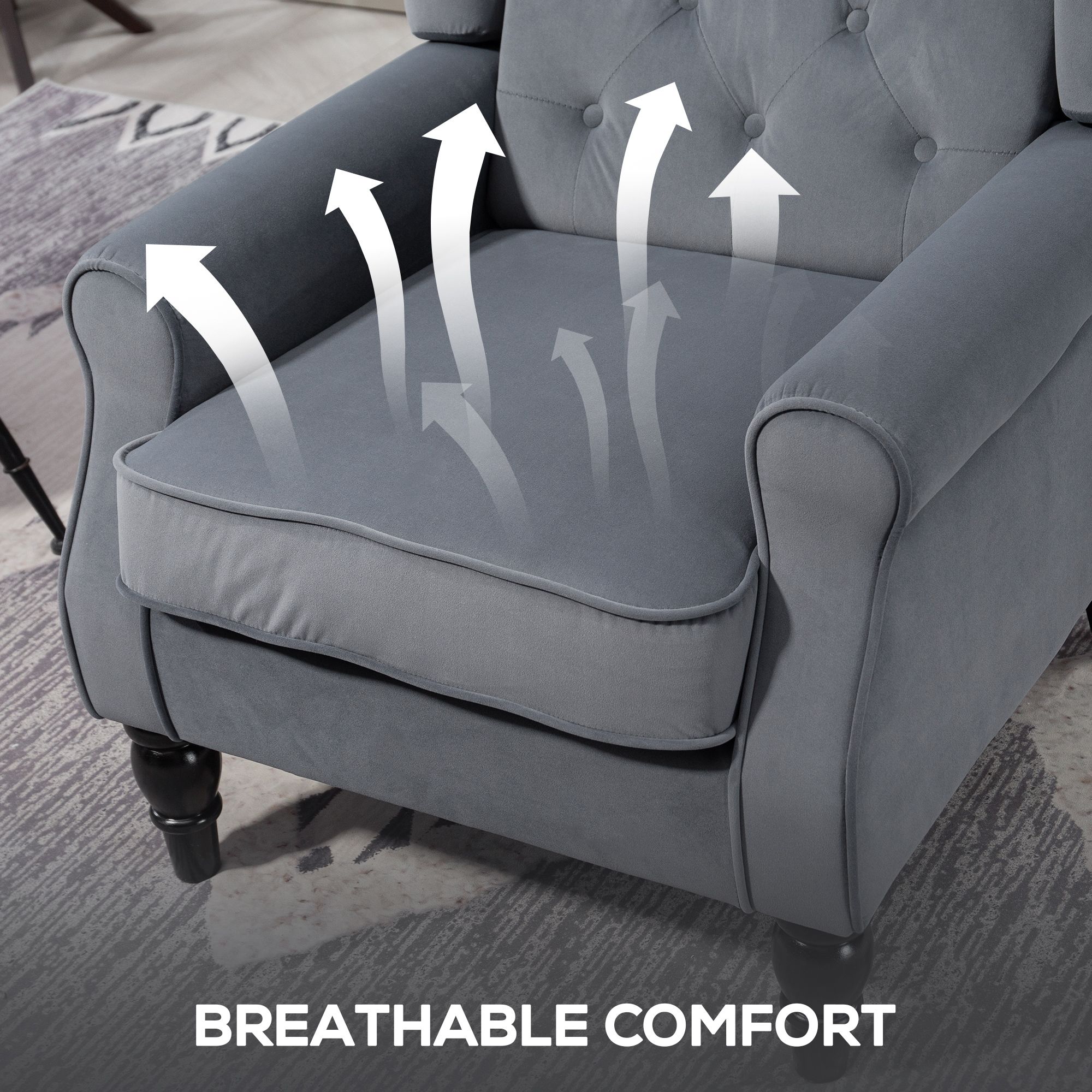 HERON Wingback Accent Chair Retro Upholstered Button Tufted Grey