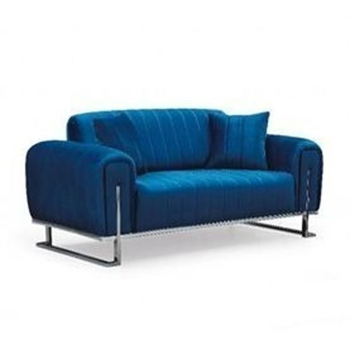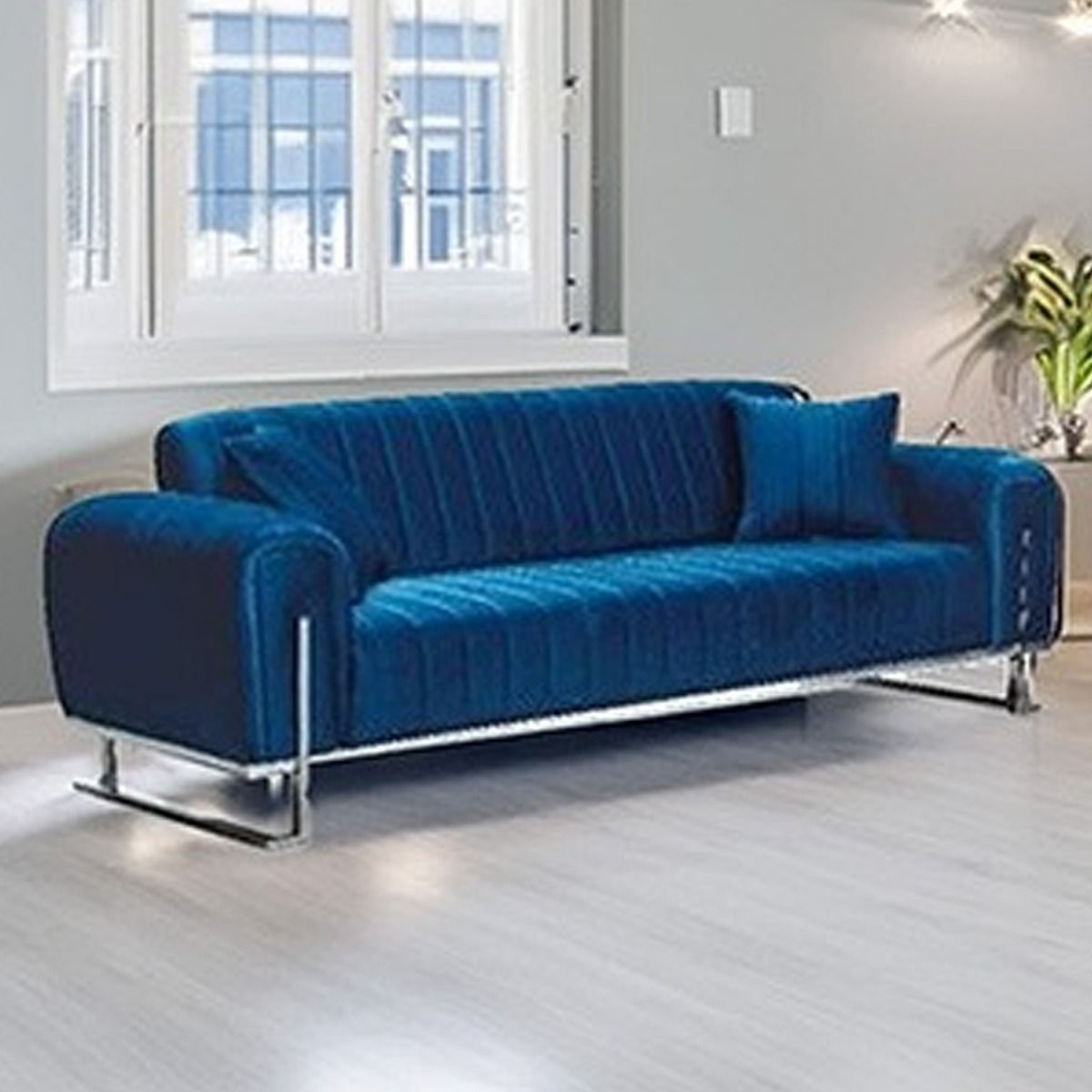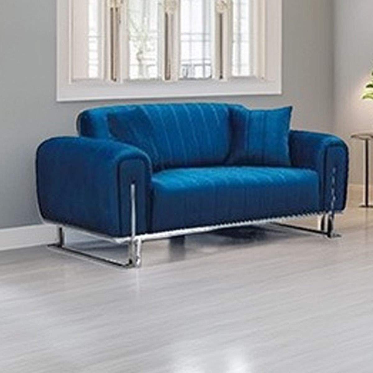 Herron Silver Metal Frame Plush Velvet 3 Seater and 2 Seater Sofa Set - Blue