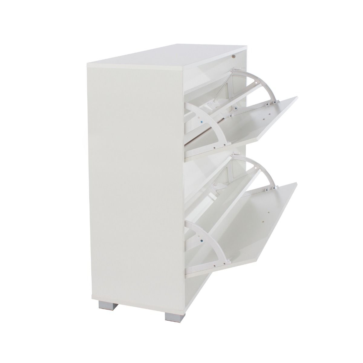Ideal for hallways or bedrooms this is a great way to store slippers and shoes. Each drop down drawer front provides a double layered storage compartment for your footwear. It features a smooth gloss white film finish which is both hardwearing and easy to clean.
