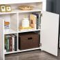 - DUO STORAGE: Features top shelf and bottom cabinet with four compartments - giving you a mix of open and discreet storage.