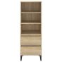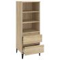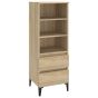 This classic highboard is meant to make a decorative and practical addition to your home. Durable material: This sideboard is made of engineered wood. The engineered wood is of exceptional quality with smooth surface and also features strength, stability, and resistance to moisture.Stable matel feet: The metal feet of the side cabinet add an industrial and calm style to your interior while ensuring stability.Ample storage space: The cabinet has 3 open shelves and 2 drawers, providing ample storage space for keeping your various daily essentials well-organised and within easy reach.Sturdy top: You can also place your favourite photos, decorations or flowers on top of this storage cabinet to enrich your life. Warning:In order to prevent overturning, this product must be used with the wall attachment device provided. Note:Each product comes with an assembly manual in the box for easy assembly.