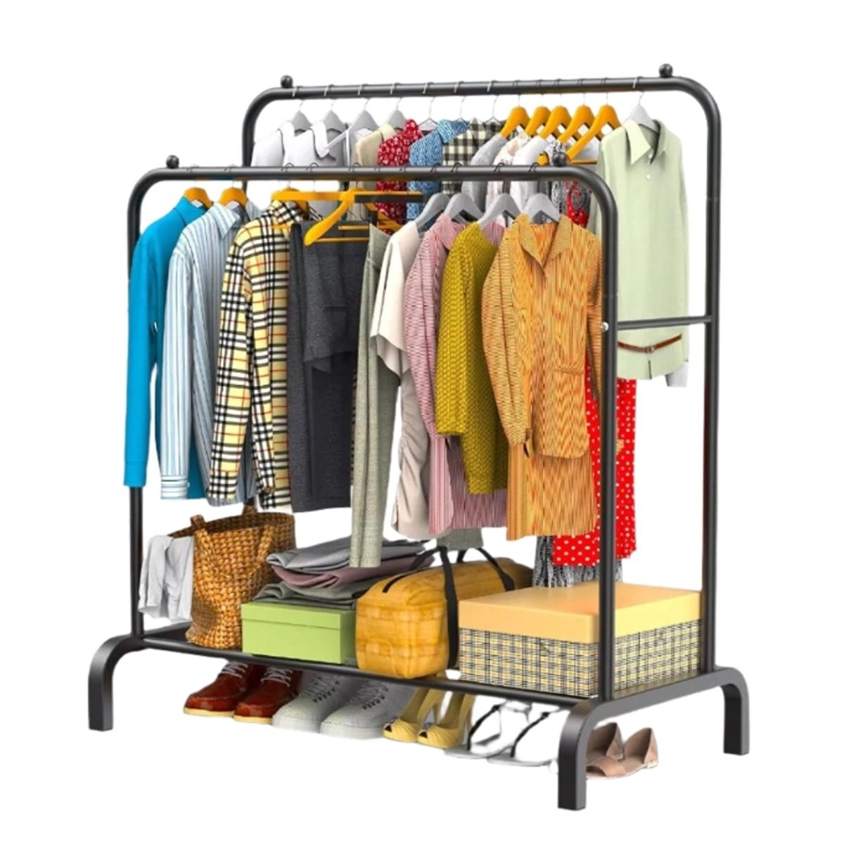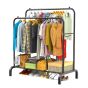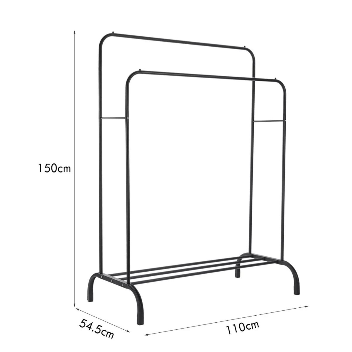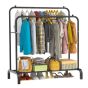 HIVANTE Clothes Rack Double Rail Steel Garment Stand with Shelf - Black