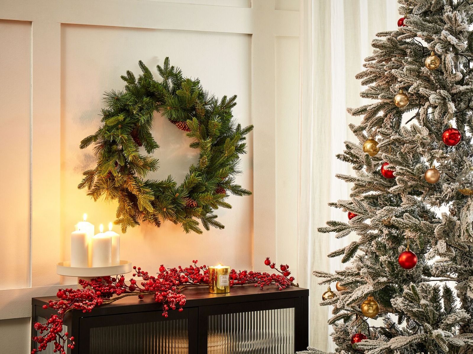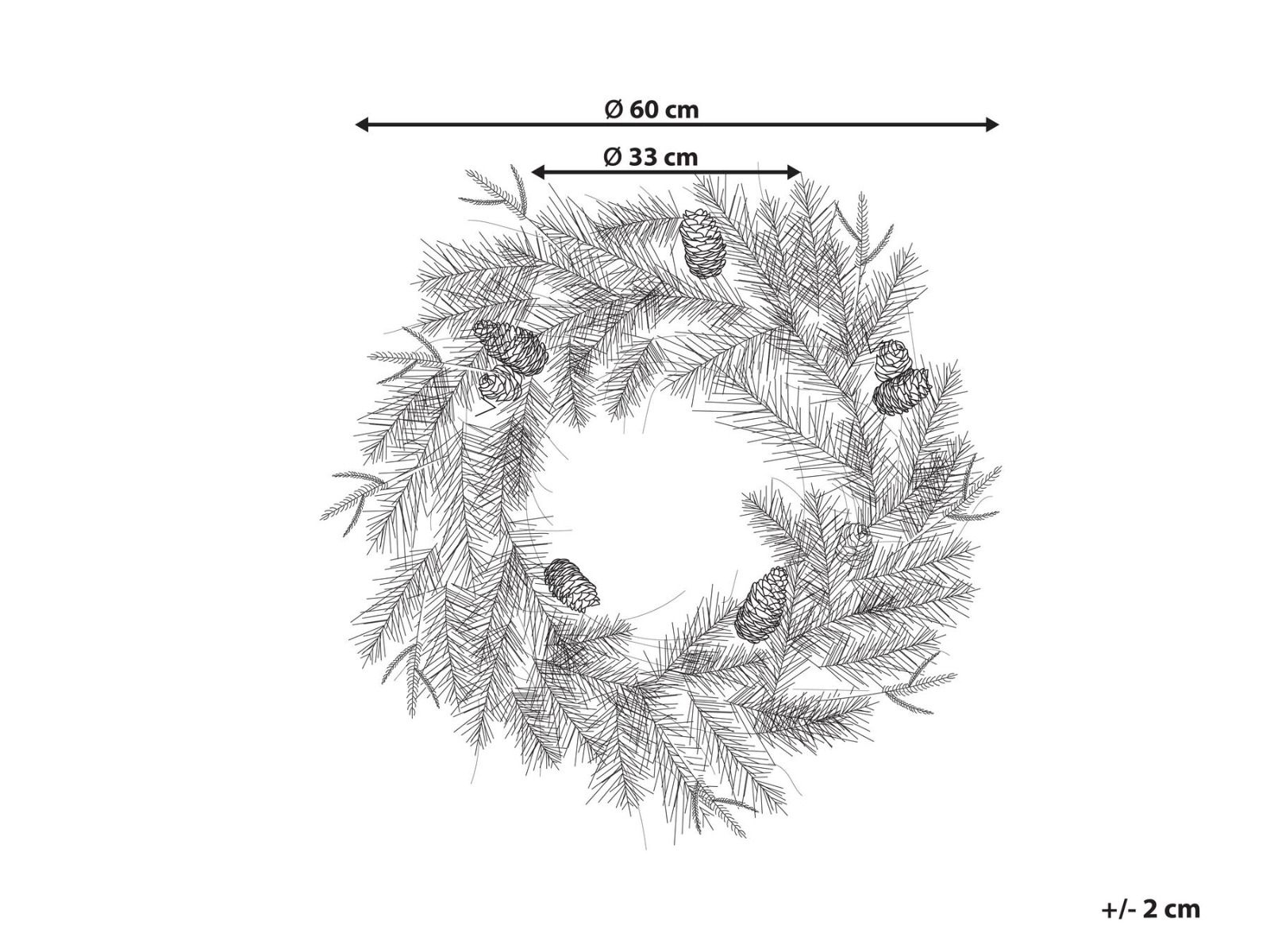 Decorative wreath that will transform your home into a winter wonderland. Featuring faux greenery complemented with artificial pine cones, this festive decoration is perfect for hanging on walls or using as a table centrepiece, instantly adding a touch of cosy holiday charm to any space. Elevate your Christmas decor with this timeless and versatile wreath that brings the spirit of the season indoors.