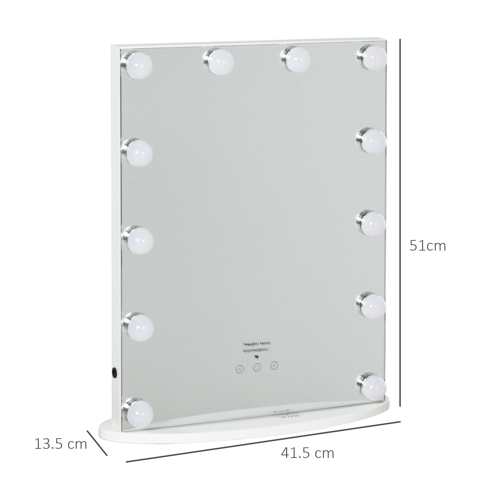 Hollywood Vanity Mirror with Lights - 12 LED Bulbs - USB Power - White