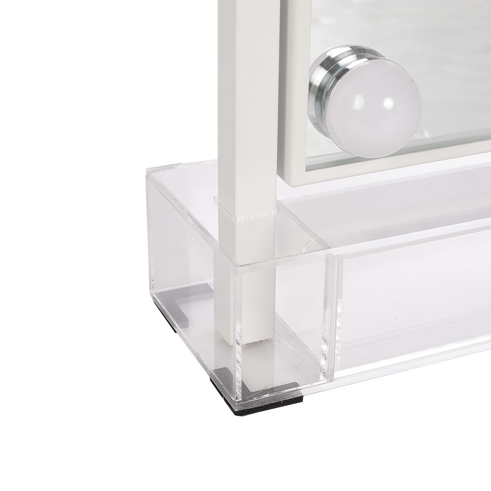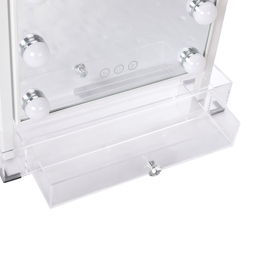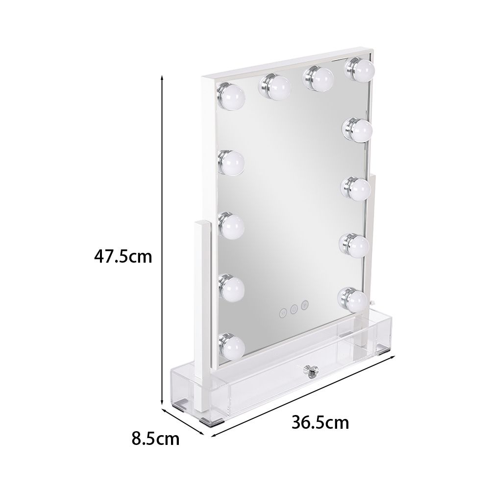 Indulge in luxury with 's Hollywood mirror, a fusion of elegance and functionality. Crafted with a sturdy metal frame and chic base featuring a convenient drawer, it boasts premium reflective glass for enduring brilliance. Illuminate your beauty ritual with 12 LED bulbs, offering adjustable hues from cold white to warm white. Effortlessly rotate the mirror for your ideal angle without the need for installation. A flawless gift, epitomizing sophistication.