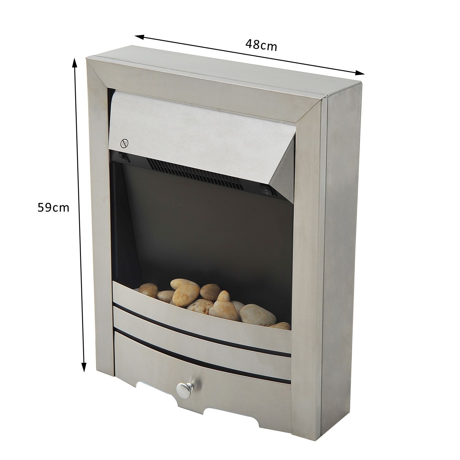 This stylish and modern 2KW electric fireplace from homcom has the design and feel of a real coal burning fireplace. Displaying realistic burning coal effects using LED lighting. Constructed from a durable metal and plastic frame in silver, the fireplace is lightweight and offers fantastic style and functionality for any home. Can be used freestanding or embedded.