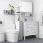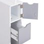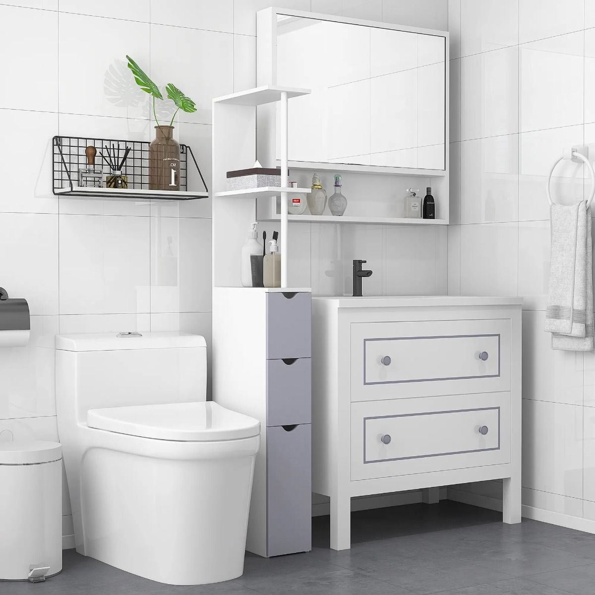 This bathroom storage cabinet with a slim profile is a great solution for your storage needs. It is made from MDF and is designed with three storage drawers and tall shelf to place items. It is a perfect match to any bathroom and decor.