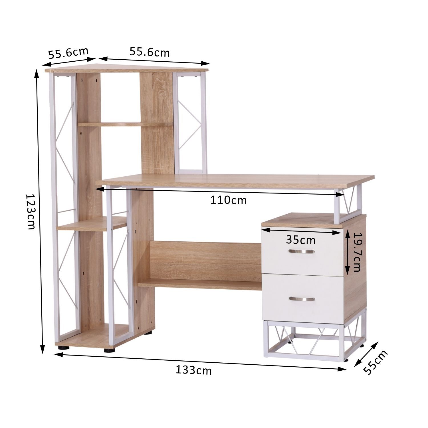 Computer Writing Desk with 2 Drawers and Multi-Shelves