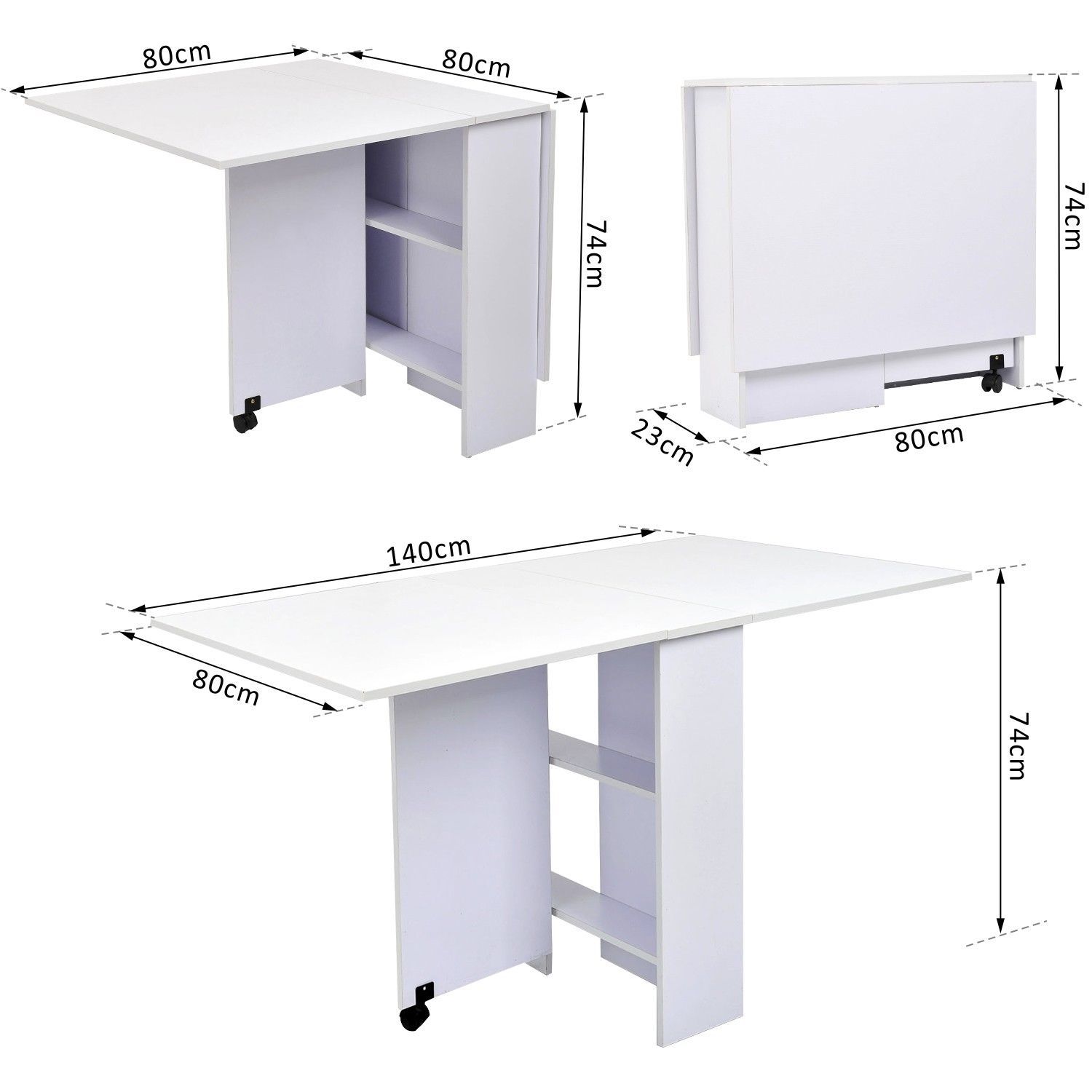 This mobile folding dining table from homcom offers a fantastic solution for smaller rooms, designed to save space when not in use easily folding away. Table can convert from a 4-seater to a 6-seater, can also be used as a writing desk or console table, thanks to the castor wheeled base the table can be moved around with ease to suit your preferences. 2 storage shelves under the table offer more even storage space.