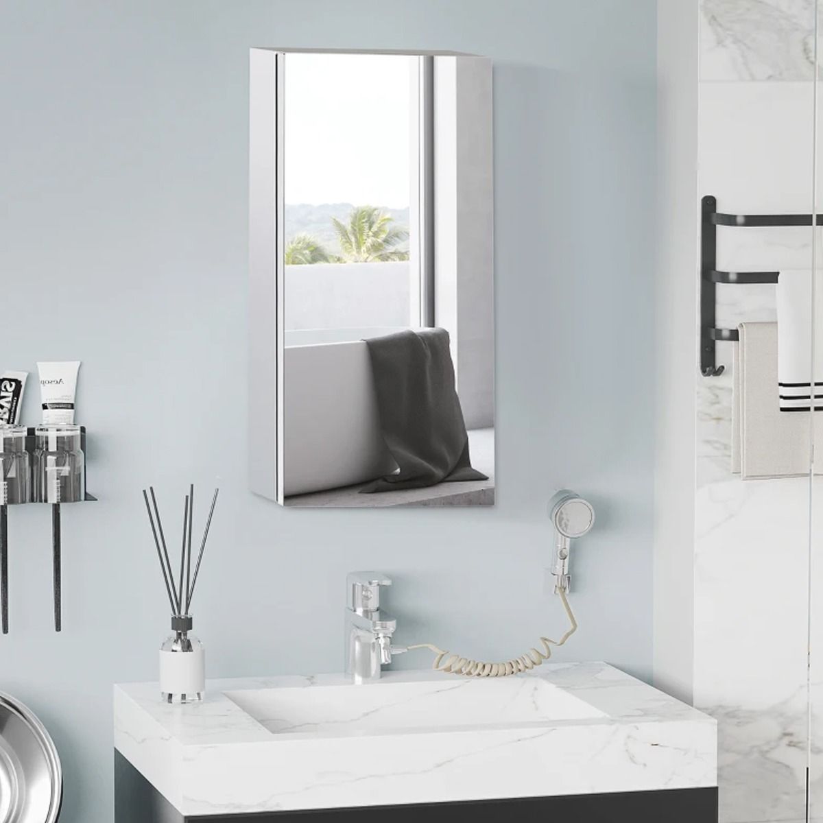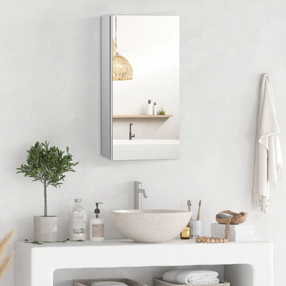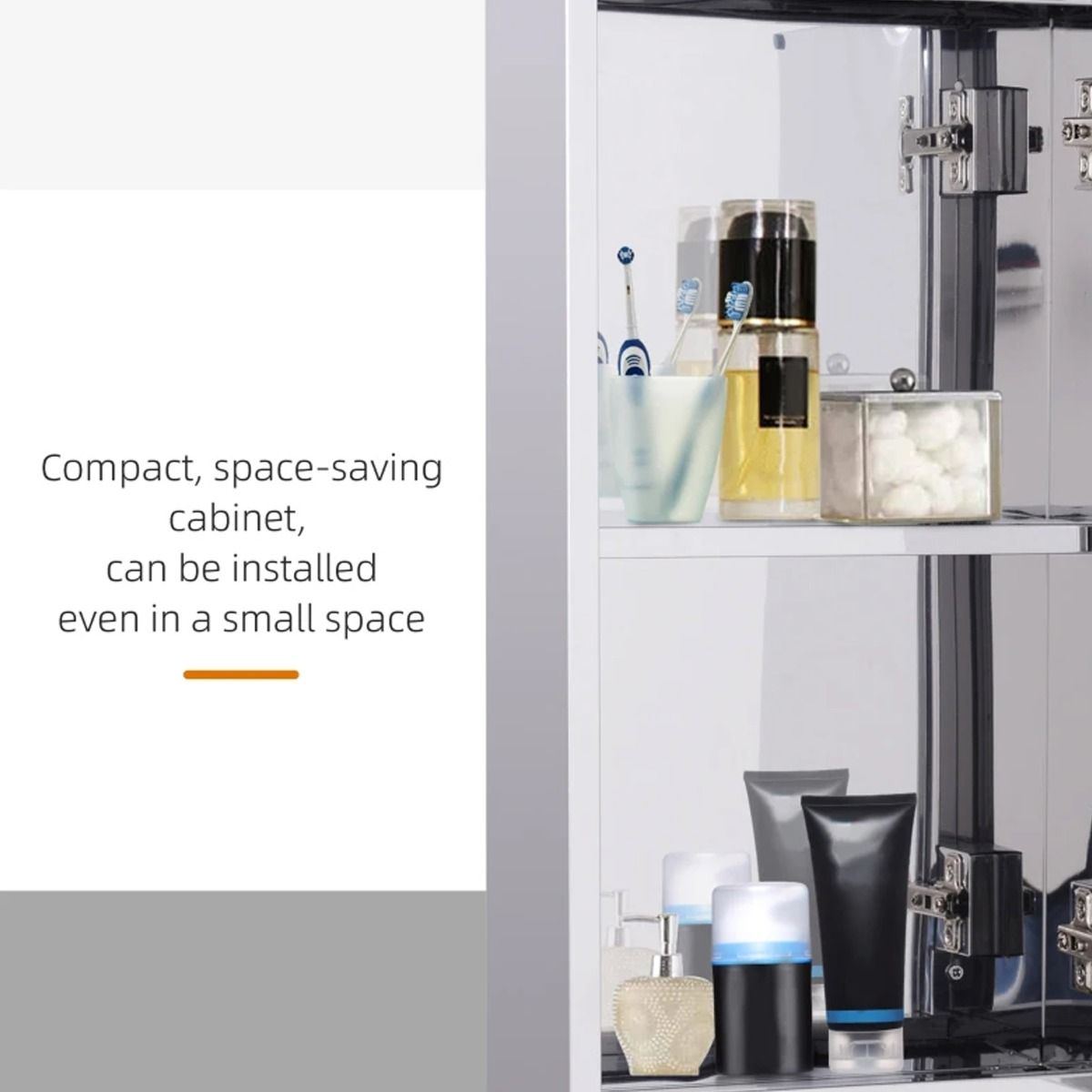 This wall-mounted mirror cabinet can be installed both in your bathroom and in your toilet. You can put beauty products, medicines, cleaning products, etc.