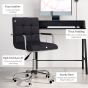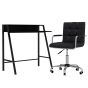 Home Office Chair and Computer Desk Set, Faux Leather Desk Chair with Swivel Wheels, Study Desk with Storage Shelf, Black