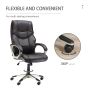 Take the stylish approach to your work, with full backing from this computer chair. The faux leather upholstery, paired with the large size and supportive back, creates a strong, stylish look you'll love having in your space. It features a swivel seat, fixed armrests, a tall back and padded seat to keep you supported and comfortable - perfect for all-day working. This comfy chair is completed with five wheels to move around easily.