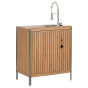 HORNLEIGH Wooden 3 Piece Outdoor Kitchen Set Sink with Cabinet - Brown with Silver
